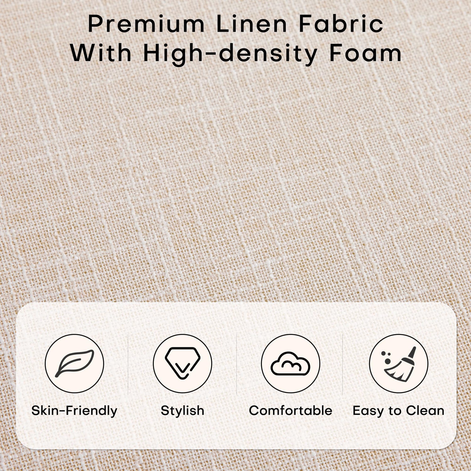 - MATERIAL: Natural Linen Fabric, Solid Wood, Engineered Woods and High Density Foam