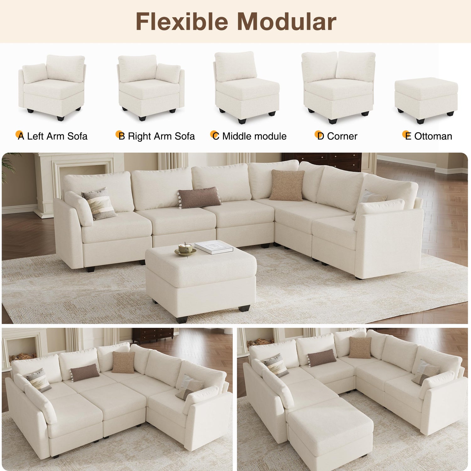 Reedvales Modular Sectional Sofa Couches, Large Convertible Modular Couches with Storage, 7-Seater Sectional Sofa for Living Room, U Shaped Sectional Couch Sleeper Sofa with Chaise (Beige, 7 Seats)