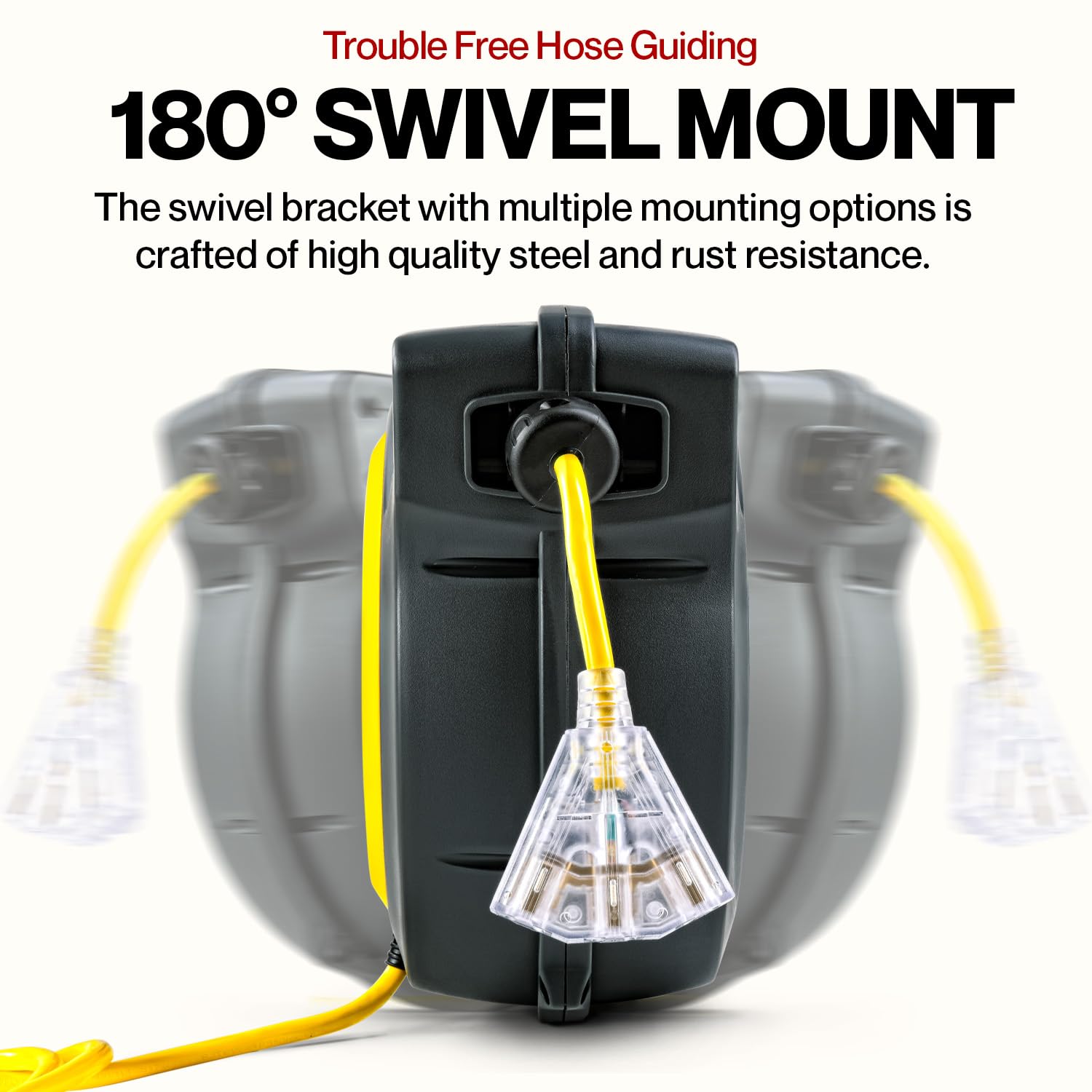 Slow Retraction Technology (SRT) tech provides a smooth consistent speed of orderly retraction at all times. Double adjustment improved ratcheting that locks the cord at any desired length. Premium Commercial SJTOW Cables are Resistant to: Acids, Alkalies, Water/Oil, Sunlight (UV), Ozone, Kinking, flame retardant, Weather usable & Ultra Flexible to work in the toughest conditions of -58°F to 221°F (-50°C to 105°C), for the best advantage to suit your needs.