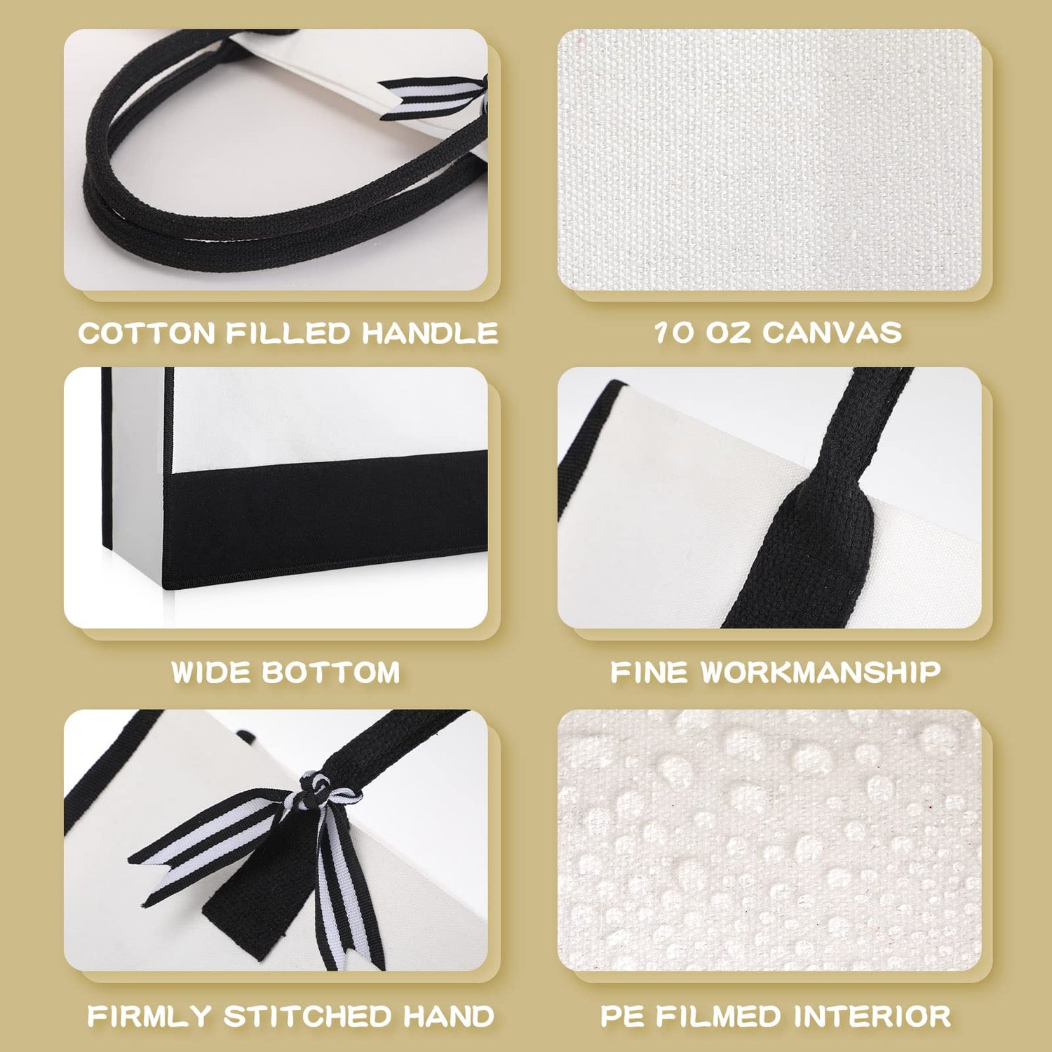 - Exquisite Workmanship: the straps also feature heavy duty stitching to ensure longer carrying and no breaking; The white tote bags bulk are made with dense thread and exquisite workmanship, and the seams are reinforced and sewn to ensure their durability