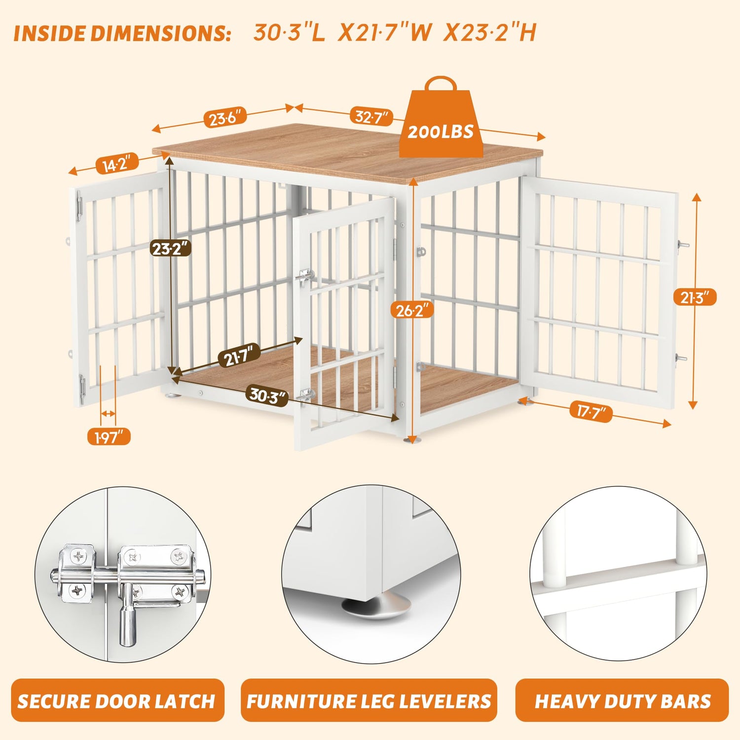 - 【Assemble with Ease】 Inside Dimensions: 30.3"L x 21.7"W x 23.2"H, Overall Dimensions: 32.7"L x 23.6"W x 26.2"H. Choosing the right crate size is vital to ensure your dog’s safety and comfort.