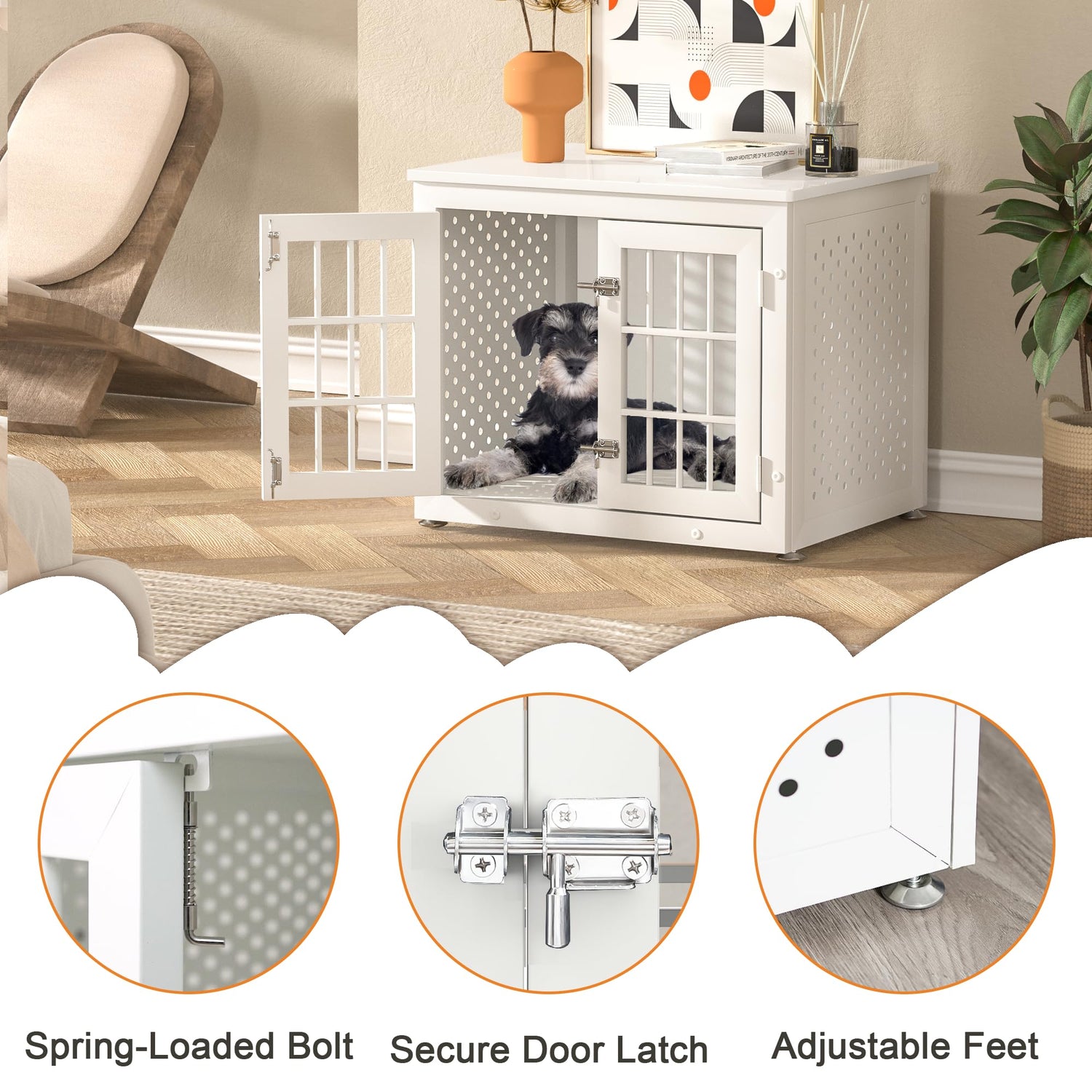rehomerance Heavy Duty Dog Crate Furniture for Small Dogs, Enclosed Design with 0.5inch Holes, Indestructible Metal Kennel, Chew Proof Pet House Cage Indoor, Decorative Dog Kennel End Table, White