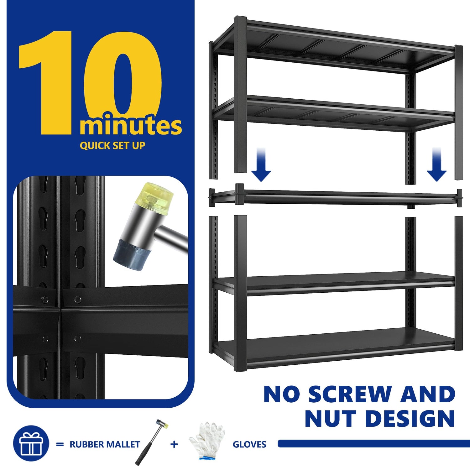 - 【10 Minutes Easy to Put Together】 Adopting a special interlocking design to make the metal shelves for storage quickly assembled with 10 minutes. There is no nuts or bolts required, you can quickly assemble every stand alone sturdy shelves for storage. To help you quickly assemble, we offer you a hammers and a pair of gloves.Easy to use products like this won't waste your time