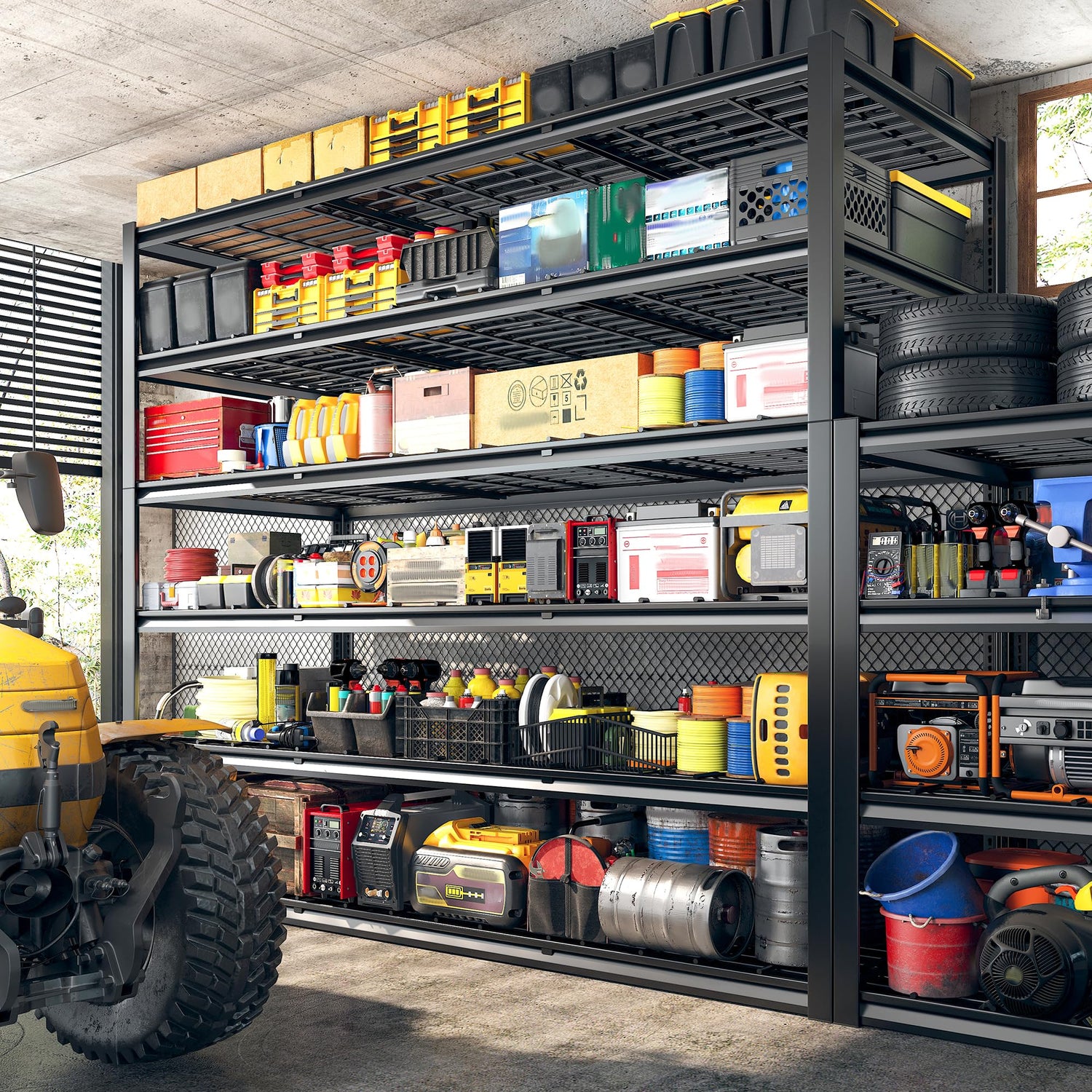 - 【3500LBS Heavy Duty Shelving】The combination of thickened metal mesh of wire shelving and double-layer metal shelves of columns gives the all metal shelves for storage an ultra-high load-bearing capacity of 3500LBS, please rest assured to store heavy items on the garage storage shelves, such as toolboxes, vehicle parts, files, dumbbells, office supplies, etc.