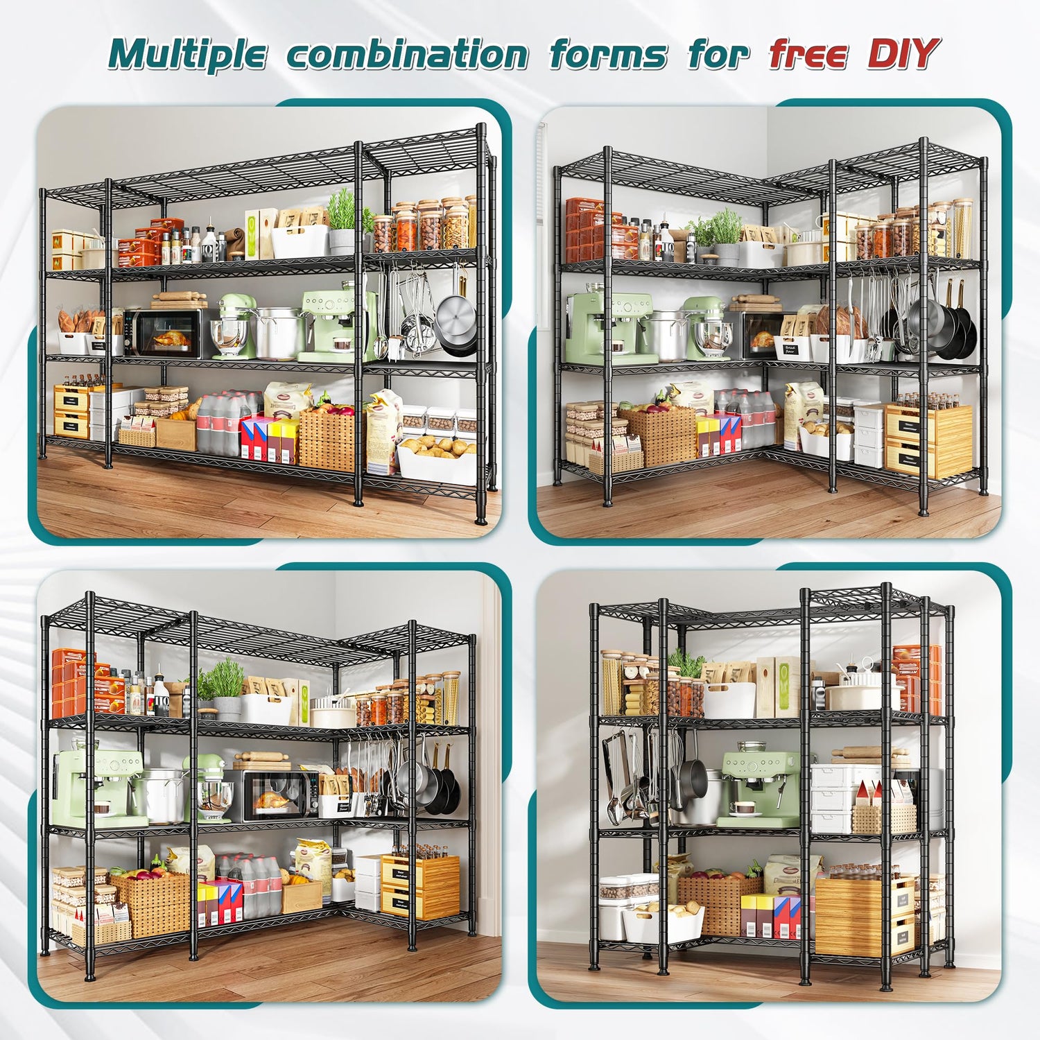 - 【L-Shaped/U-Shaped Storage Rack】The storage shelf can be assembled into an L or U shape according to your space, which can make better use of the space and maximize the utilization of storage. You can choose two assembly methods as needed - horizontal assembly or L/U-shaped assembly. Note: This metal shelf cannot be divided into two separate shelves.