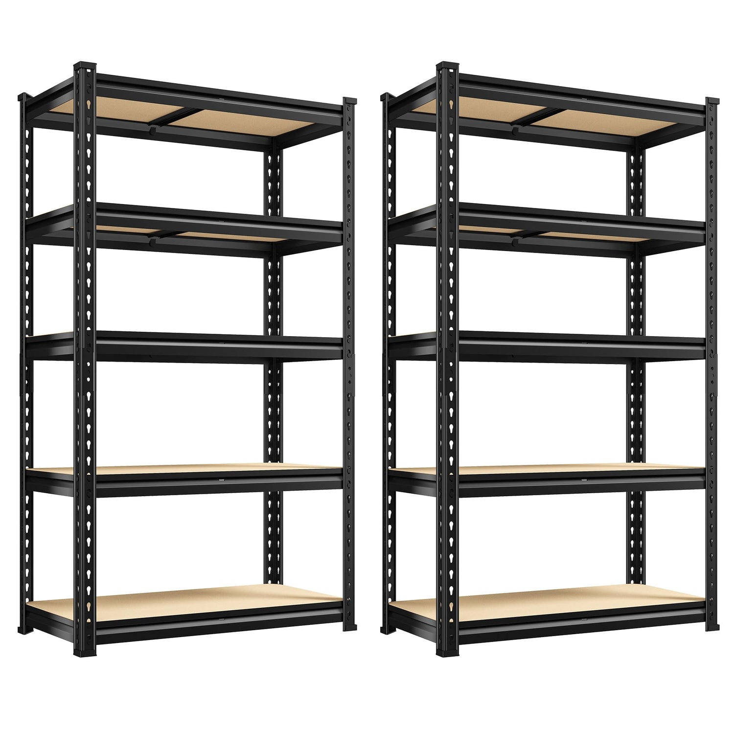 REIBII Set of 2 Storage Shelves 5 Tier Garage Shelving Heavy Duty Adjustable Garage Shelves Load 2000LBS Metal Shelving Units for Storage Warehouse Pantry Closet, 27.6" W x 11.8" D x 60" H