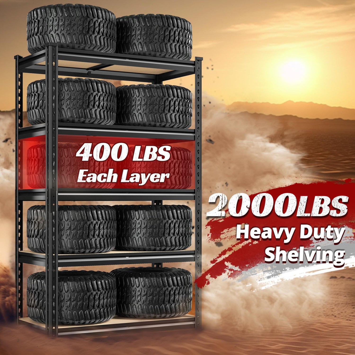 - 【2000LBS Capacity Garage Shelving Heavy Duty】 REIBII's metal shelves consist of thickened steel legs + premium slabs that can hold up to 400 pounds per shelf for a total load capacity of 2000 pounds, which makes the storage shelves unit more stable, robust and able to store many items for a long time