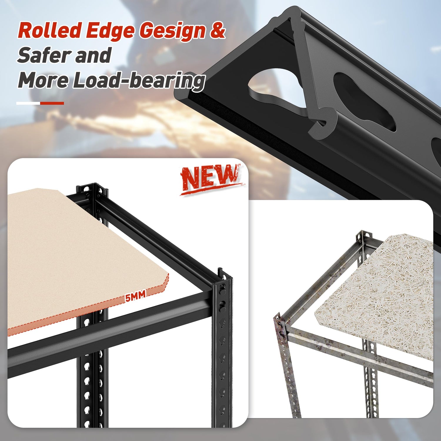 - 【Ultra Strong Load Capacity】This heavy duty shelving can hold up to 400 lbs in a single tier and 1600 lbs in total load capacity, which meets the needs of heavy storage such as tools, boxes, bags, food and more. This garage shelving has 1 support bar per tier, reinforced design is more resistant to pressure and deformation, and the 4 tier structure is rock-solid