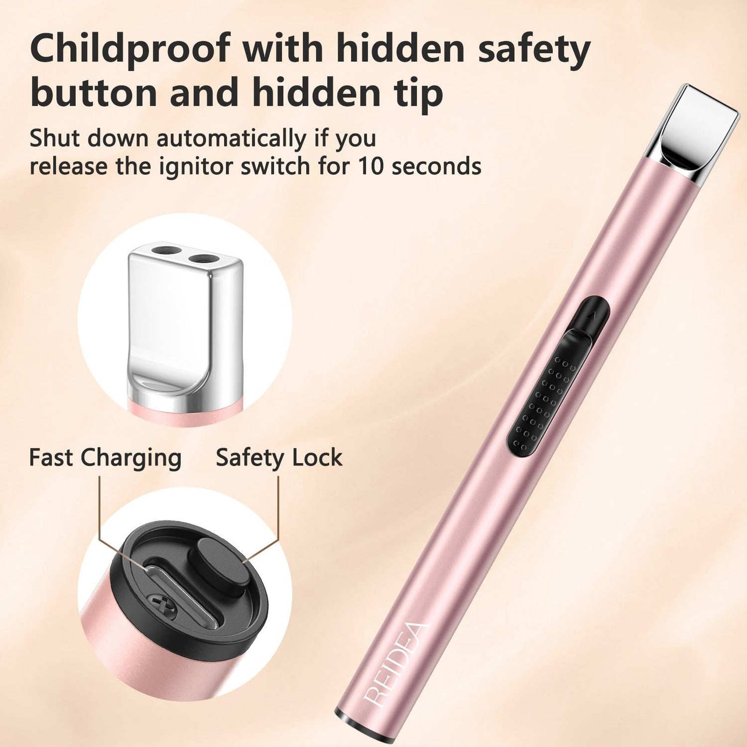 REIDEA Candle Lighter Long USB Rechargeable Lighter Arc Windproof Flameless Lighter with Safety Switch Buttom Electronic Lighter for Home Kitchen BBQ Camping Stove