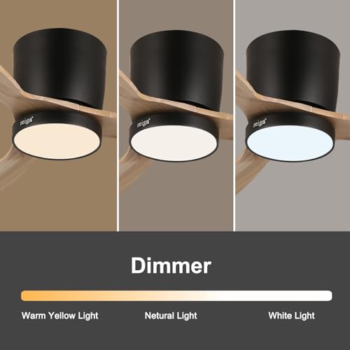 reiga 52" Natural Wood Ceiling Fan with Light and Remote, 3 Blade Flush Mount Low Profile Ceiling Fan for Bedrooom Living Room, Quiet DC Motor