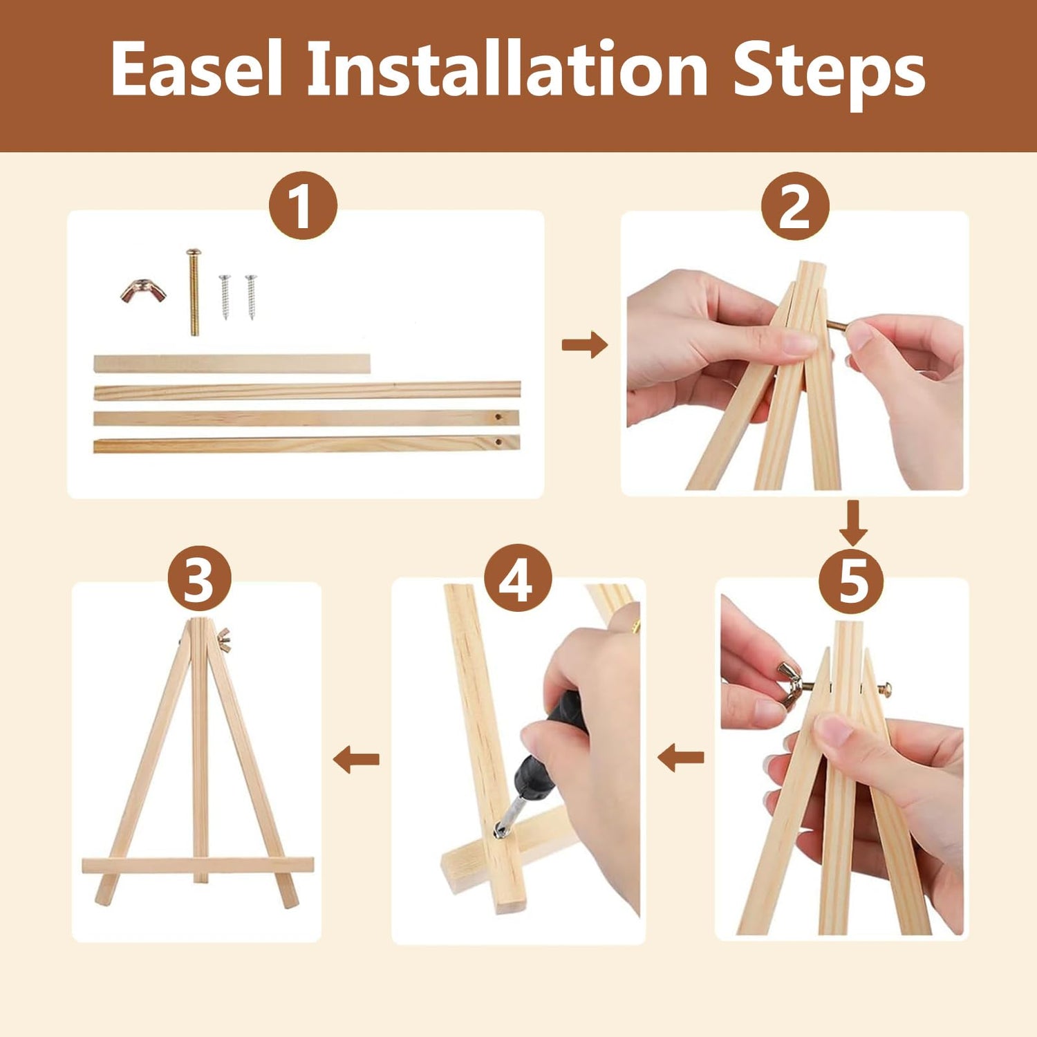 - [What You'll Receive]: This Framed Paint by Numbers Kit for Adults includes 3 framed colored printed canvases, 1 wooden easel, 1 color box, 3 acrylic paints, 3 reference images, 6 nylon brushes, and 6 wall-mounting hooks with screws.