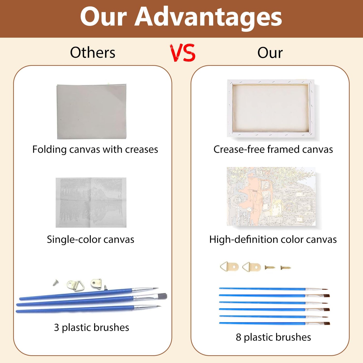 - [High-Definition Colored Canvas]: Unlike other regular canvases for Paint by Numbers, ours uses a high-definition colored canvas, which makes it easier to distinguish number areas and prevents eye strain.