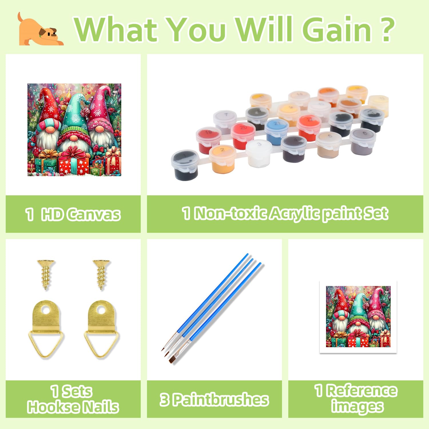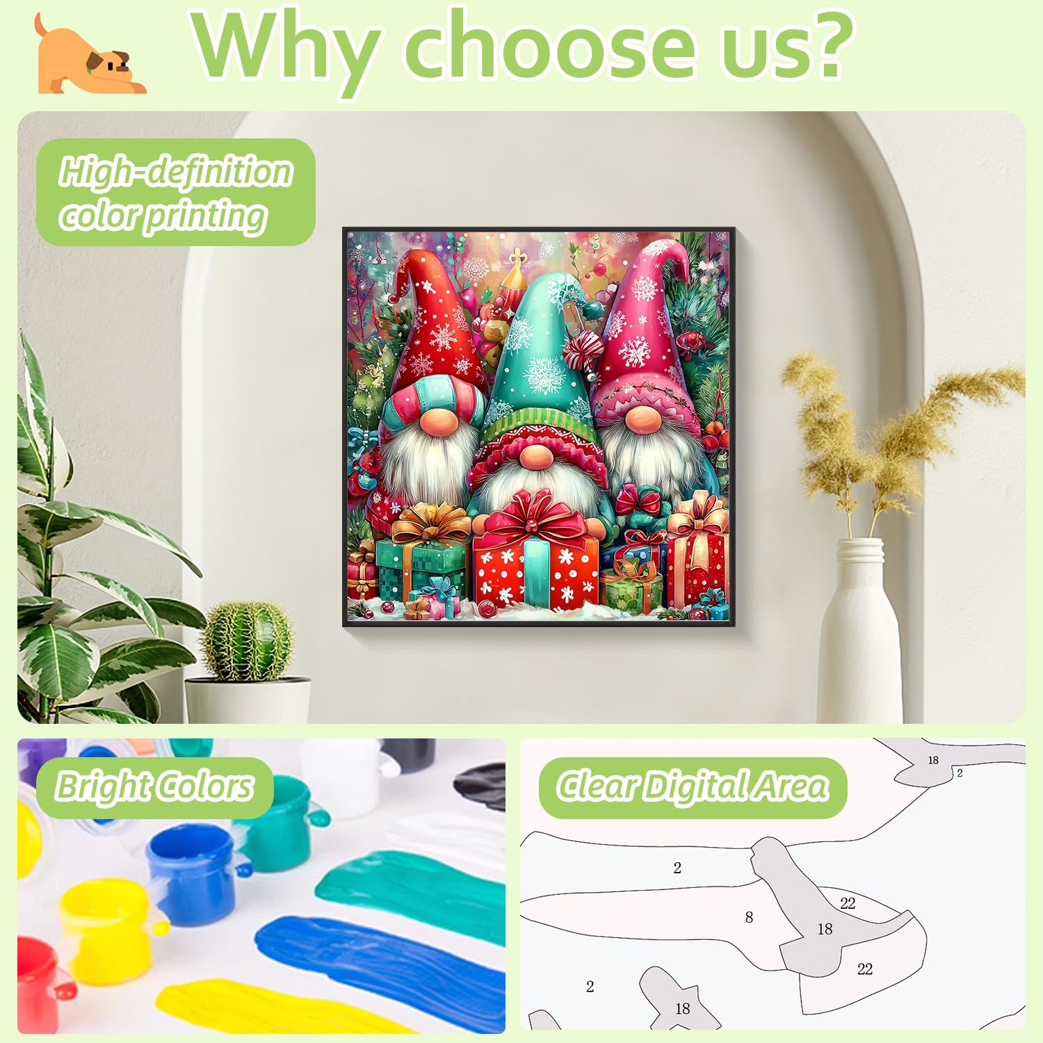 Reivworl Christmas Paint by Numbers Kit for Adults Beginners, Gnome Paint by Numbers, Adult Paint by Number Kits for Gifts and Home Wall Decor 16x16 Inch
