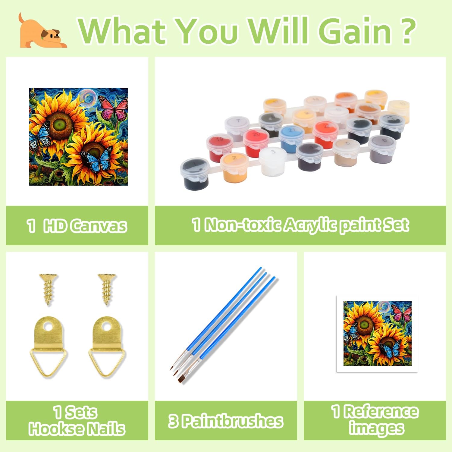 - [What You Will Receive]: Paint by numbers kit for adults contains: 1 HD Printed Color Canvas, 1 Instruction Manual, 1 Reference Image, 1 Set of Acrylic Paints, 3 Brushes, 1 Set of Hooks