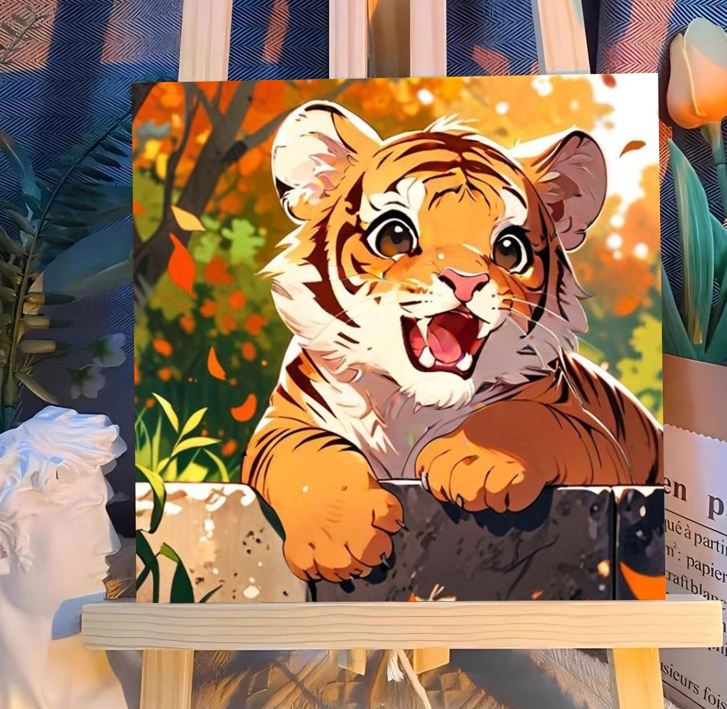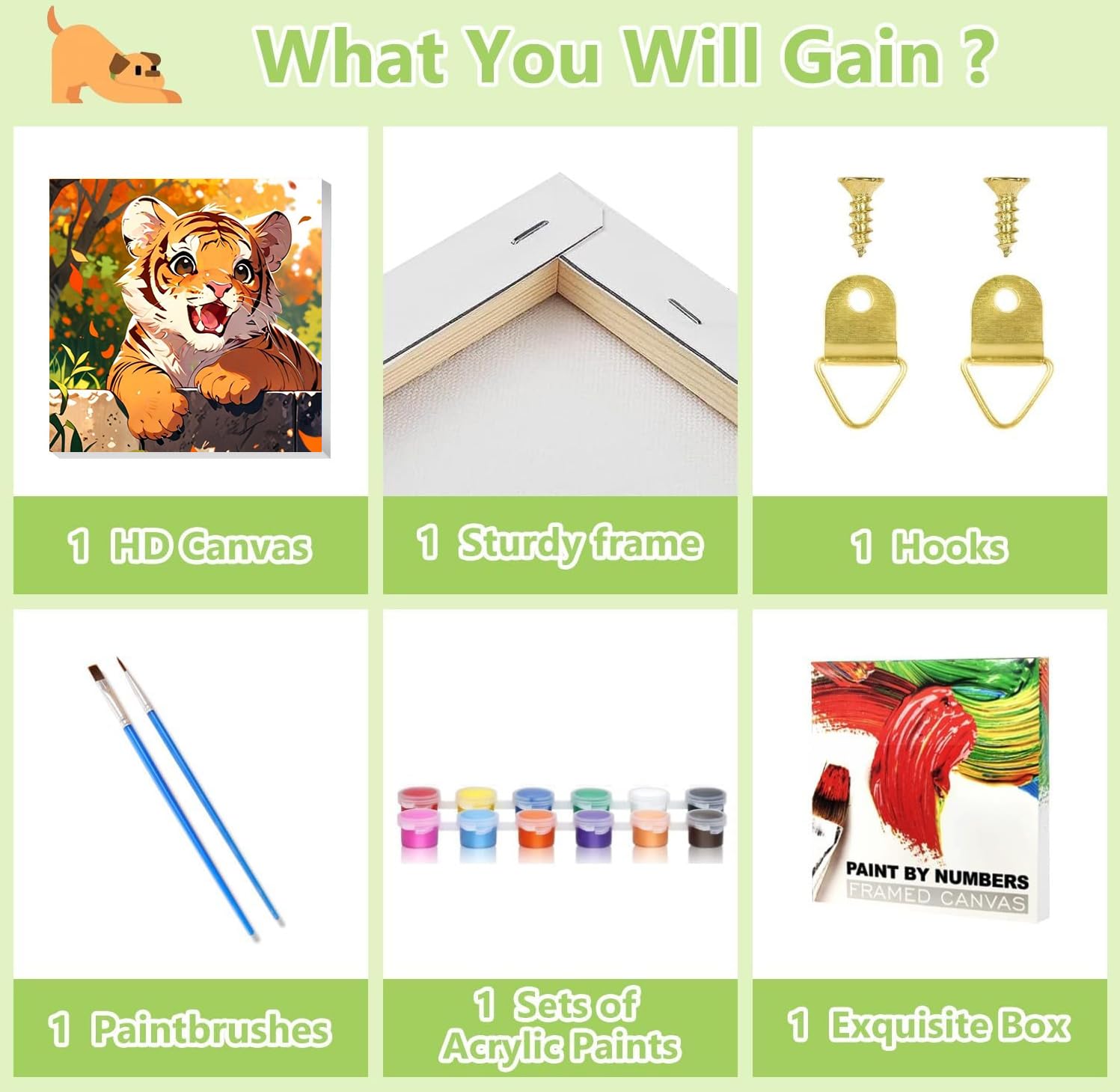 Reivworl Framed Paint by Numbers Kit for Adults Beginner & Kids Ages 8-12, Tiger Paint by Number with Frame and Easel, Painting by Numbers for Gifts and Home Decor (10X10 Inch)