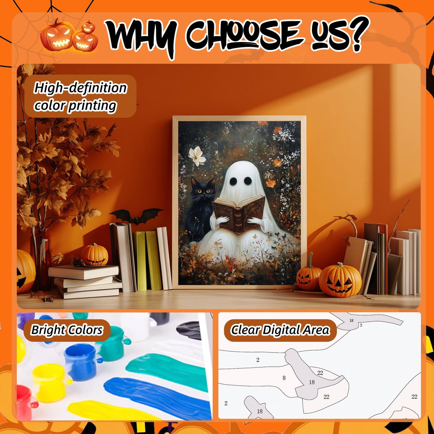 Reivworl Halloween Paint by Numbers Kit for Adults Beginners, Ghost Paint by Numbers, Adult Paint by Number Kits for Gifts and Home Wall Decor 16x20 Inch