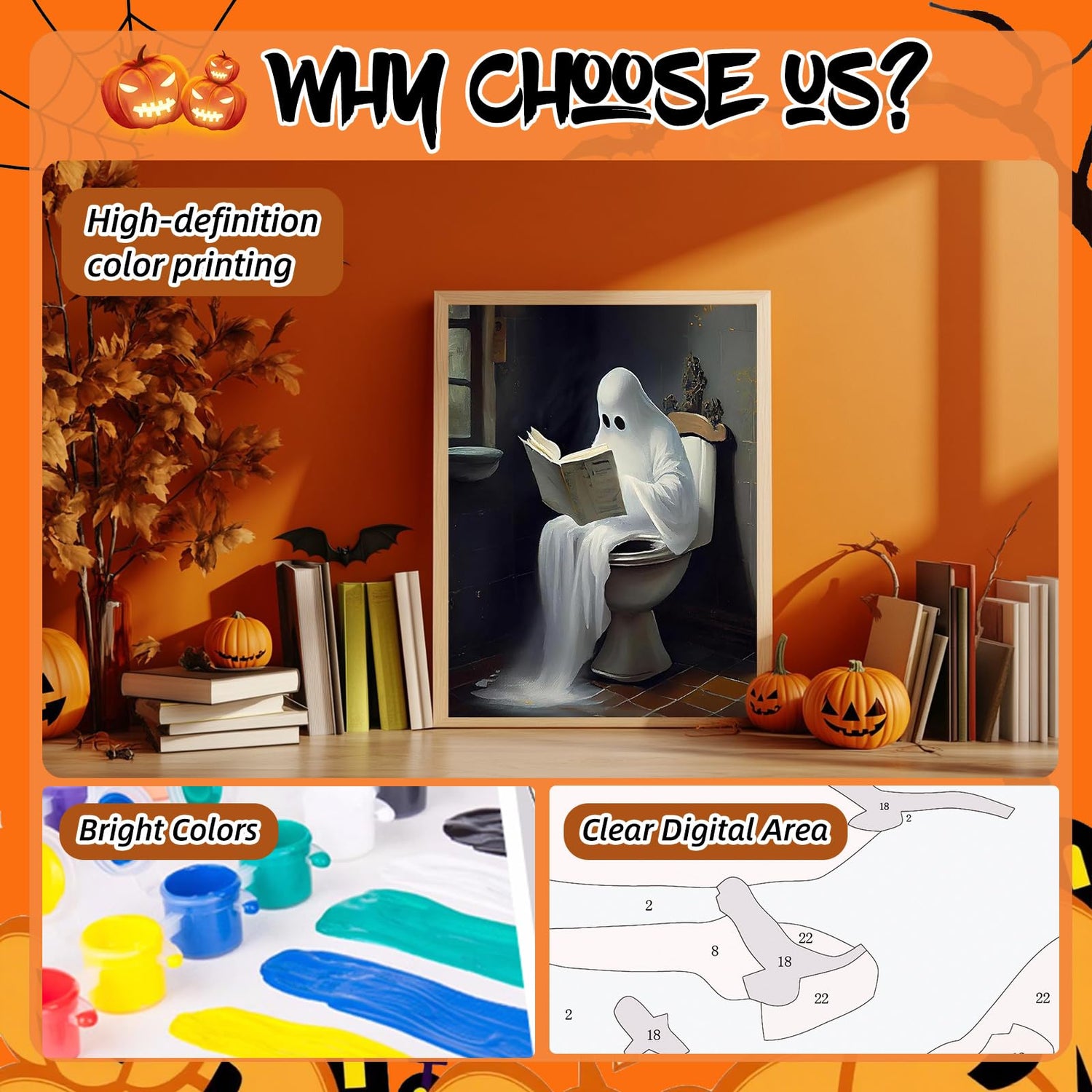 Reivworl Halloween Paint by Numbers Kit for Adults, Ghost Paint by Numbers, Adult Paint by Number Kits for Gifts and Home Wall Decor 16x20 Inch