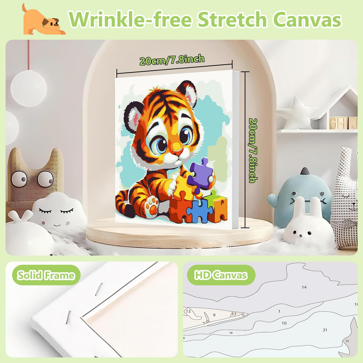 - [HD Color Canvas]: Unlike other paint by number kids, our paint by number kids uses an HD color canvas. The numbered areas are easier to distinguish, which can prevent eye strain and protect children's eyes.