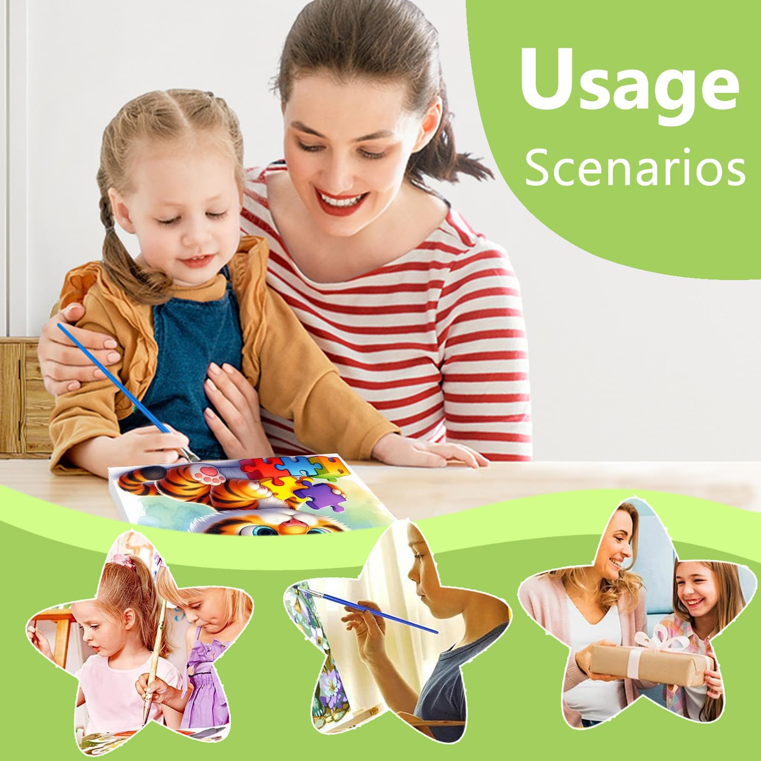 - [Applicable Scenarios]: Our paint by number kids is perfect for interest development and parent-child interaction. It's a great way to enhance stamina, cultivate patience, and improve practical skills.