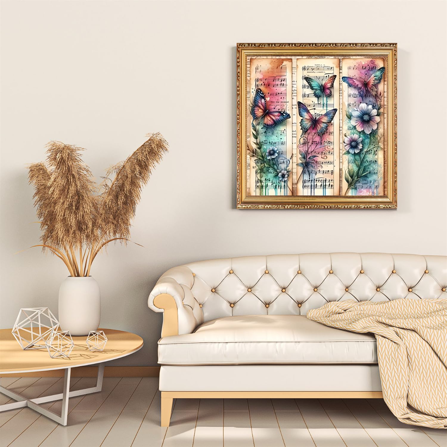 Rekxtmo DIY Butterfly Diamond Art Kits for Adults, 5D Diamond Painting for Beginners, Music Diamond Dot, Gem Painting Kit, Small Dimond Art Paintings Kit, Crafts for Adults, Home Wall Decor 14x14inch