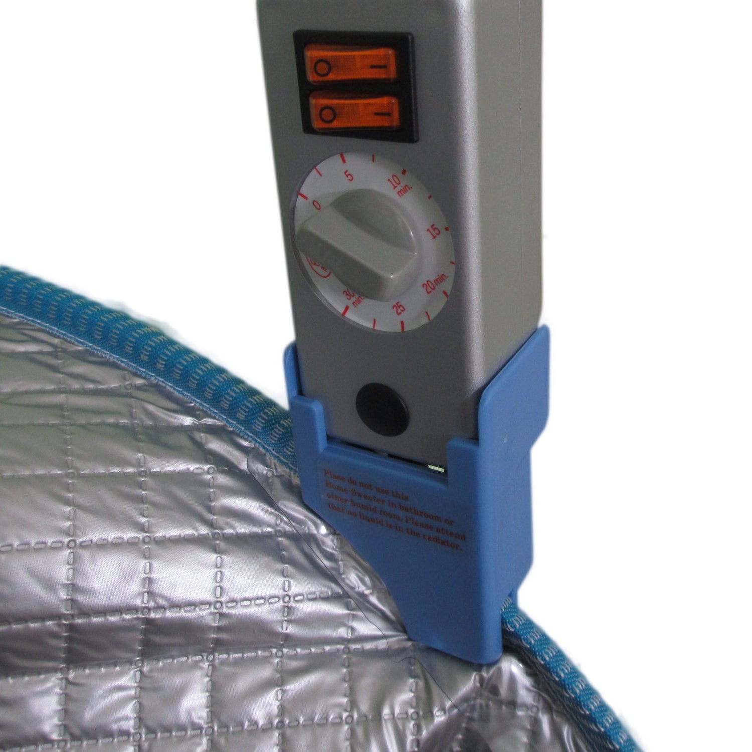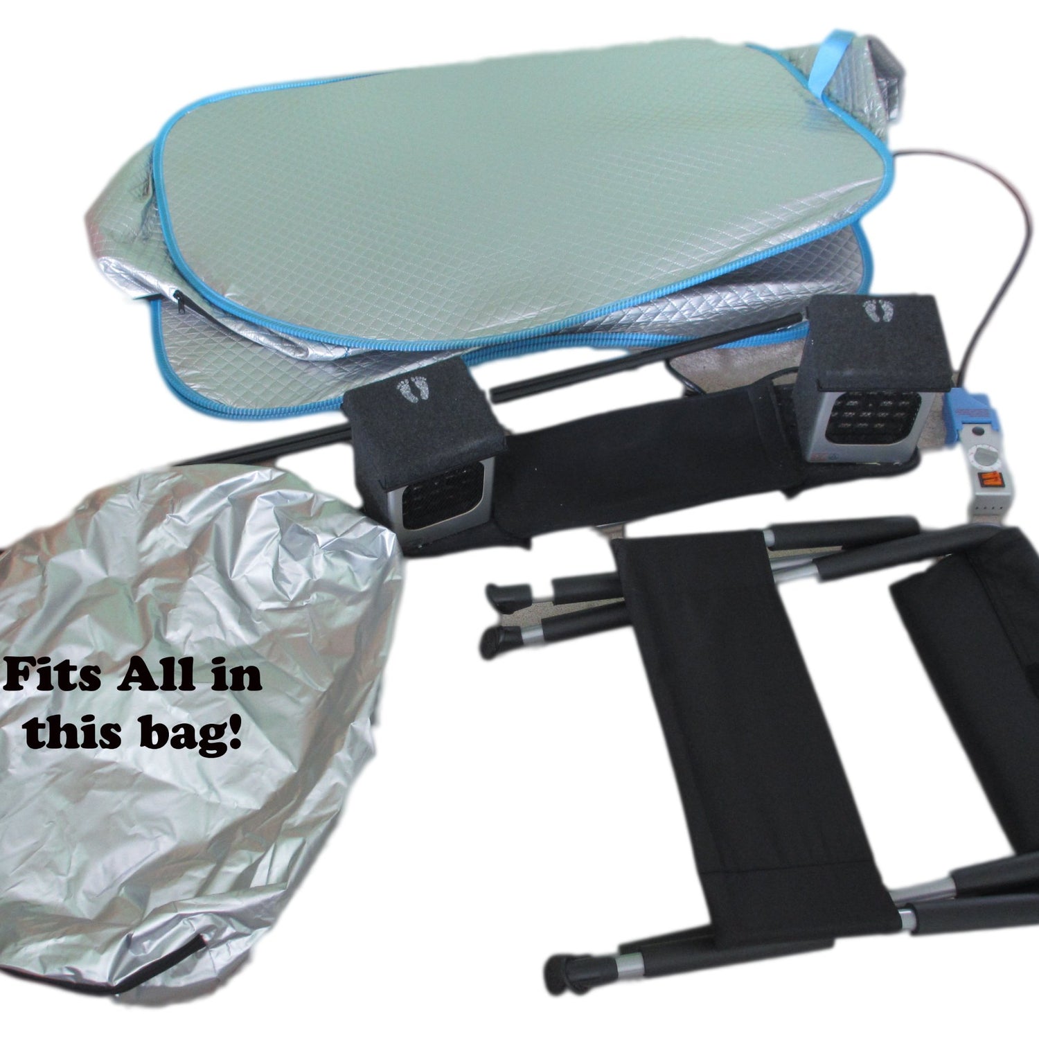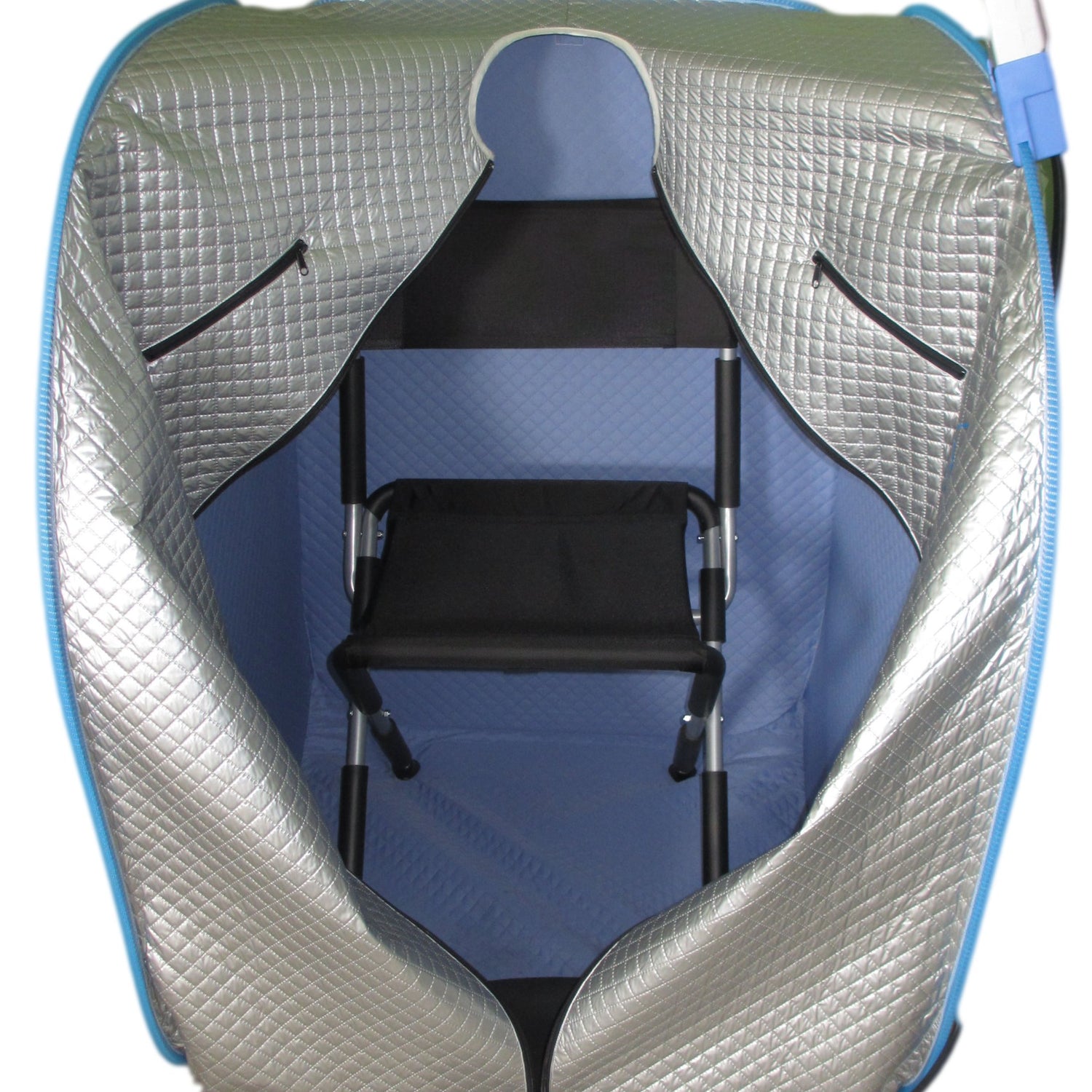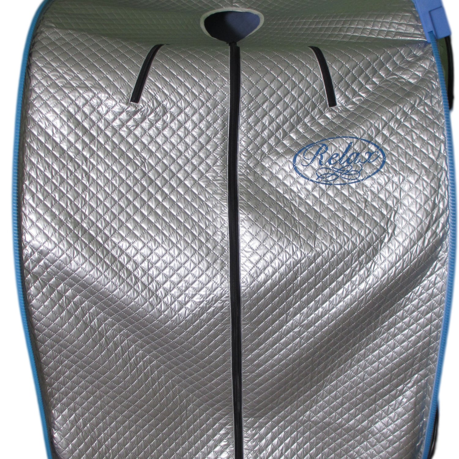 Details: Note that this listing is for the 110 volt American style plug. The Relax Sauna Quality Advantage - The Relax Sauna's advantage is its powerful radiators that exclusively emit the highest quality far infrared radiation (FIR). This far infrared is absorbed by the water molecules in the body, increasing core temperature. Independent tests show that the Relax Sauna raises core temperature faster than other saunas, which means you can get a faster sweat, saving you time. The Relax Sauna heats up in seconds. You can get a full sweat in the Relax Sauna in just 20 minutes. Other saunas take 10-15 minutes just to heat up and then another half hour on top of that to get a full sweat. The main component in the radiator is a ceramic semi-conductor that excludes near and middle infrared energy, and actively radiates far infrared light with a wavelength between 4 and 14 microns. Ceramic Semi-conductor Multiple semi-conductors in the radiator produce uninterrupted FIR emissions. PTC resistors on the radiator's heater assembly enable electricity to flow continuously while the temperature in the sauna chamber is kept between 140° - 170° degrees Fahrenheit. FIR energy is not visible to the human eye, but it is detectable as heat. It has been demonstrated in clinical tests that FIR energy rays are highly therapeutic. Human cells absorb far infrared in a range of 8 to 13 microns. Peak absorption occurs at 10 to 11 microns. FIR energy resonates with living biomass, optimizes cellular activity, and restores normal body processes that release toxins, and support normal health. There are 20 of these semi-conductors in each of the two 750 watt radiators in the Relax Sauna. An electric fan on the back of each radiator cools the heater assemblies, and distributes comfortable heat quickly throughout the sauna's interior. The interior of the sauna tent is a mirror for far infrared rays. Its silver embedded nylon material prevents heat loss and reflects far infrared light throughout the sauna chamber like a mirror reflects visible light.