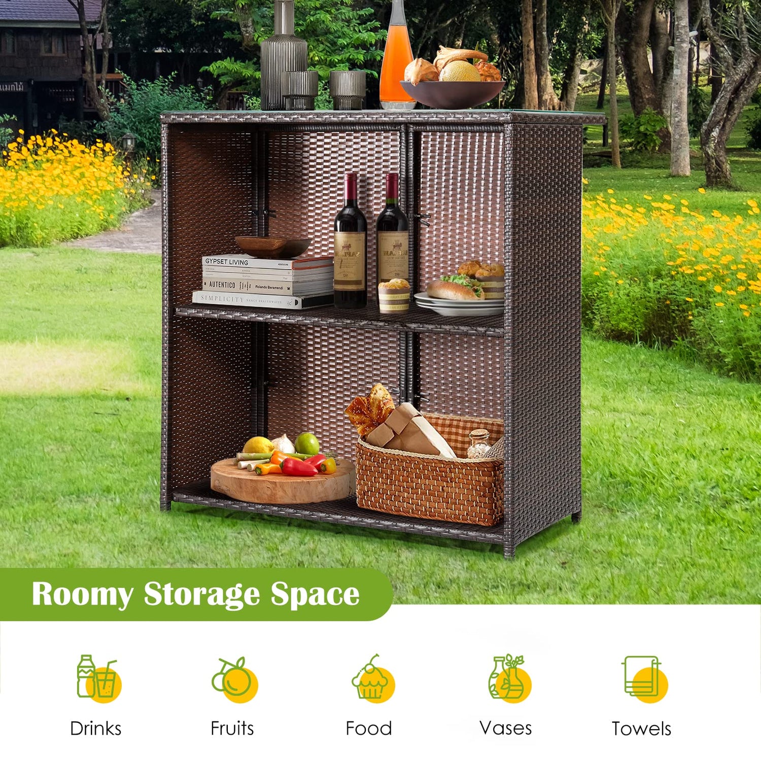 - 【Practical Bar Table With Glass Top and 2 Ample Shelves】 : Designed with 1 high quality tempered glass tabletop and 2 open shelves, this outdoor bar table comes with roomy storage space, which easily accommodates different belongings, such as drinks, fruits, food, vases and towels, allowing you to reach them without hassle.