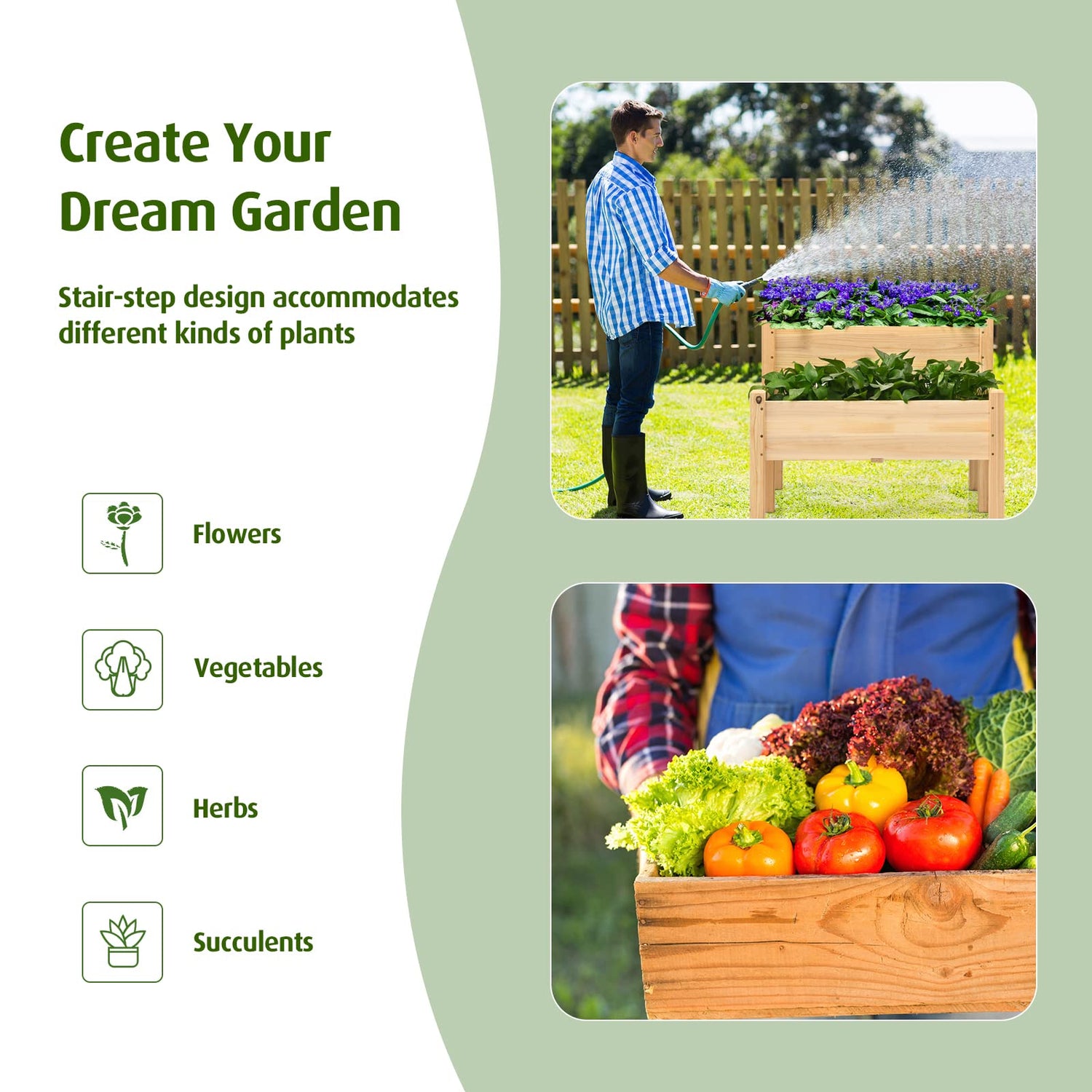 RELAX4LIFE 2-Tier Raised Garden Bed - Fir Wood Garden Elevated Planter Box with Legs, 8 Drainage Holes,220 Capacity for Growing Vegetable, Elevated Garden Bed for Outdoor Yard Patio Balcony (Natural)