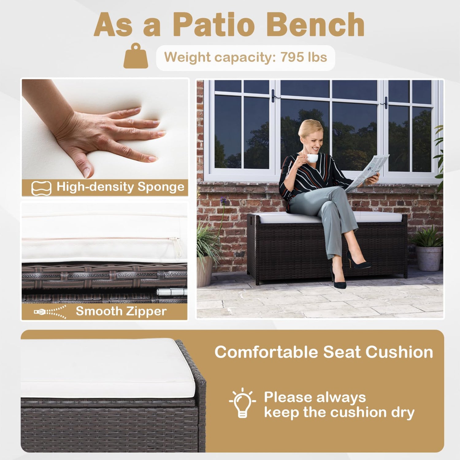 - 【Removable Cushion for Versatile Use】More than a outdoor storage box, footstool, garden bench or side table! This deck box comes with a sponge padded cushion for cozy sitting experience. Besides, you can remove the cushion to use it as a coffee table, making it a versatile addition to your front porch, backyard, garden, balcony, deck, sunroom and poolside.