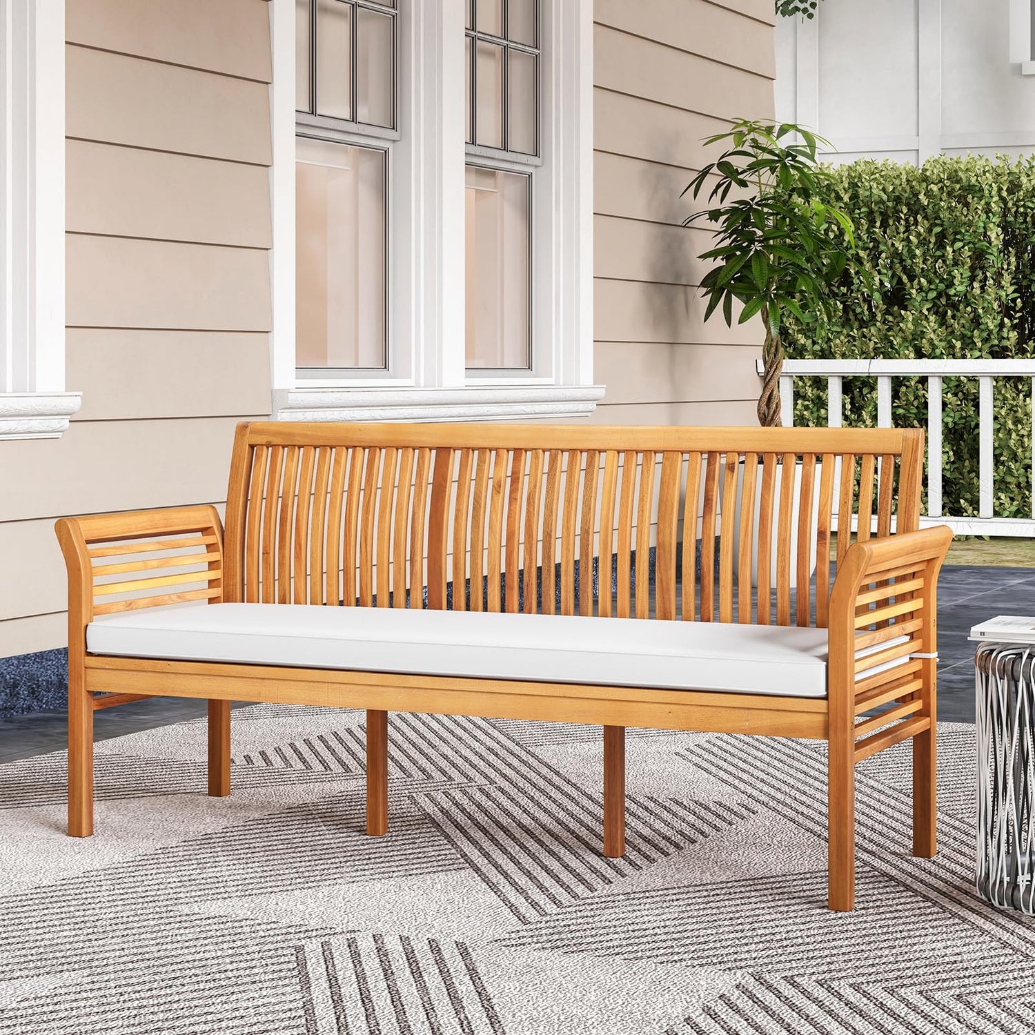 RELAX4LIFE 62.5’’ Outdoor Bench Acacia Wood - 3-Person Patio Bench w/Backrest, Armrests & Removable Seat Cushion, Slatted Wooden Garden Bench for Front Porch Park Backyard, 1200 LBS Weight Capacity