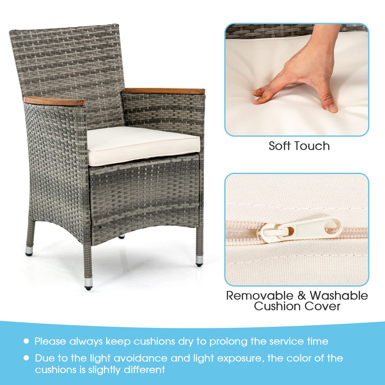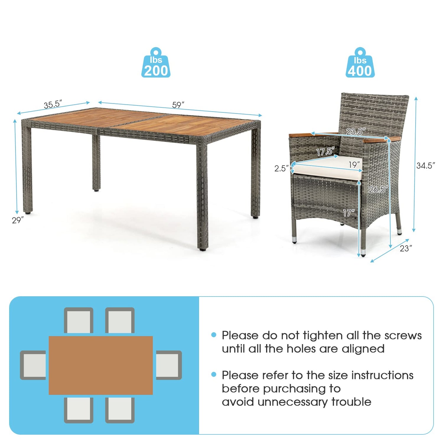 RELAX4LIFE Outdoor Patio Dining Set - 7 Pieces PE Rattan Wicker Furniture Set with Acacia Wood Dining Table Cushioned Armchairs Space-Saving Patio Table and Chairs Set Sectional Conversation Set