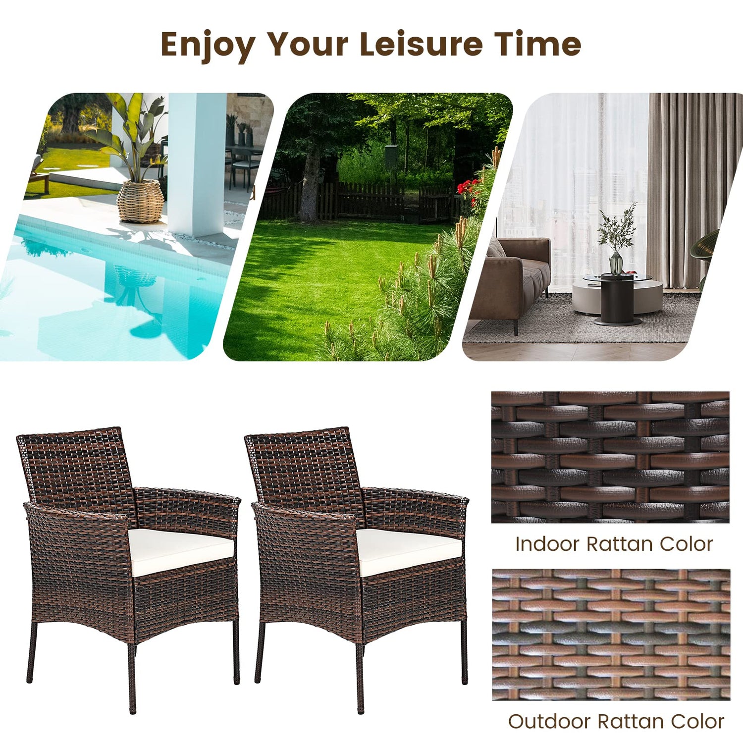 RELAX4LIFE Wicker Patio Chairs Set of 4, Indoor Outdoor PE Rattan Armchairs w/Cane Back, Seat Cushions for Bistro Porch Poolside, 360LBS Weight Capacity, 4 Pack Outdoor Dining Chairs (4, Brown+Beige)