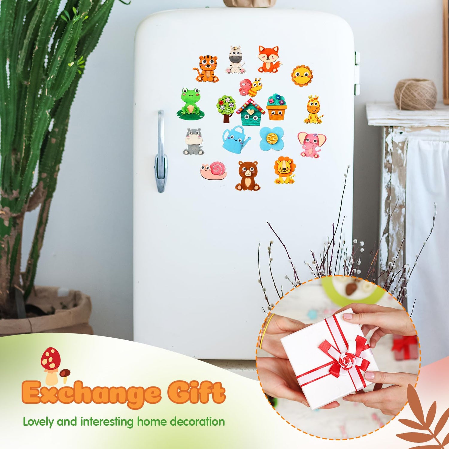 • DIY Wooden Magnets: our wooden magnet painting crafts are made from quality wood and are equipped with magnets; With a smooth, burr free surface, these wooden crafts (around 2.36 inch/ 6 cm) can be securely attached to any magnetic metal surface