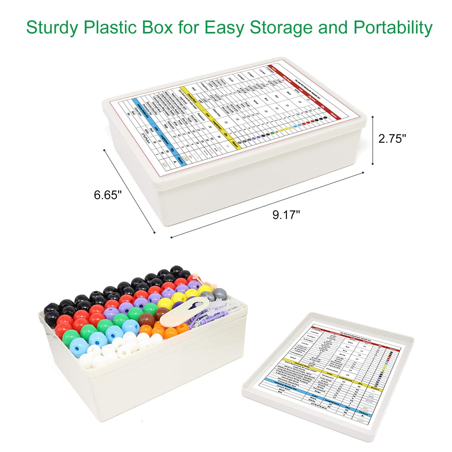 - 【Non-Toxic Material】All materials of our 444PCS Organic Chemistry Model Kit are eco-friendly.Polypropylene atoms (pp plastic) feel smooth,no scraps or cutting edges from the holes;Low-Density Polyethylene links (LDPE plastic) are easy to remove and put on.The atom parts and links are color coded to national standards for ease of identification and come with an Instructional Guide to easily identify all atoms and connectors.Delivered in a sturdy plastic box for easy storage and portability!
