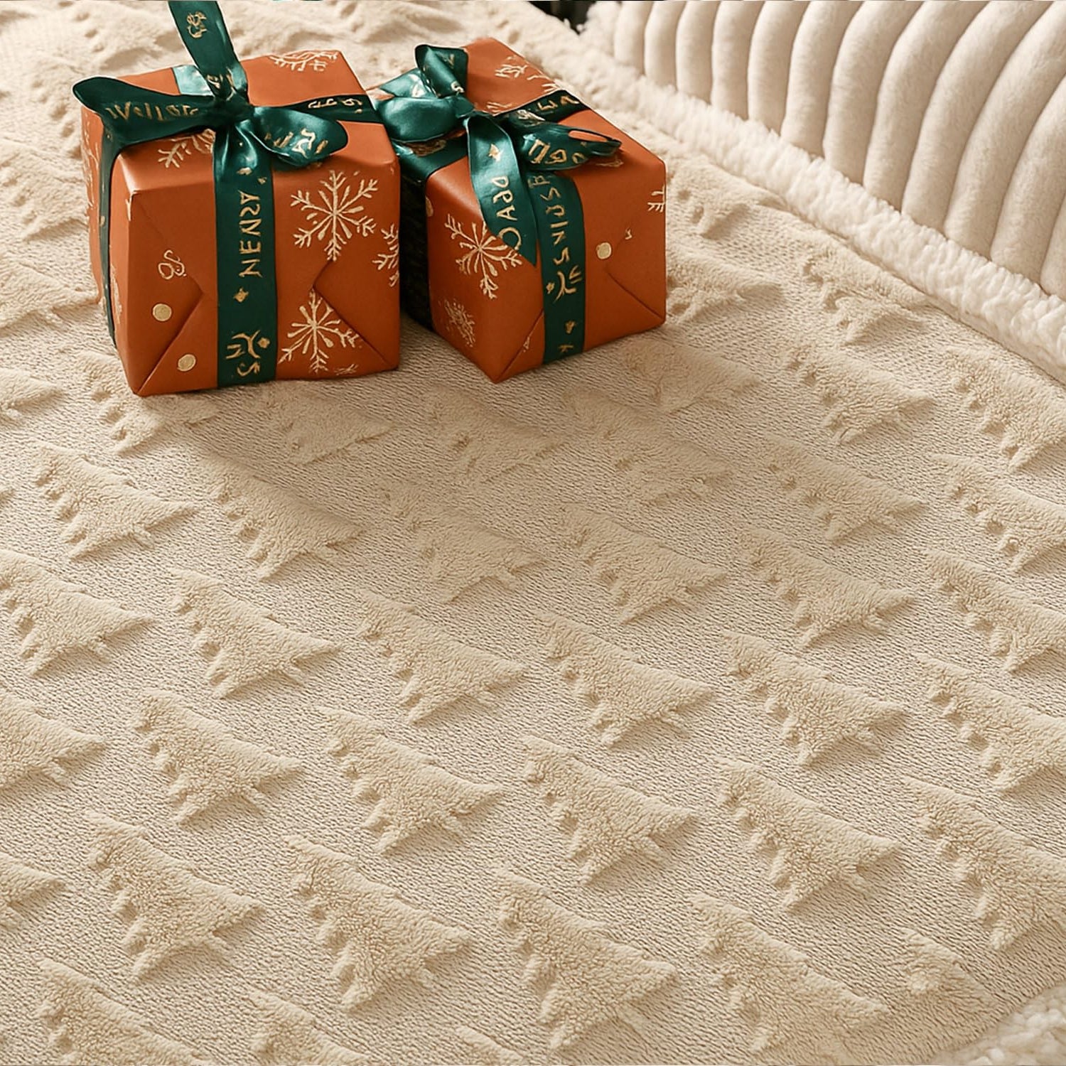 - 3D Xmas Tree Christmas Design: adorn your space with holiday cheer; This throw blanket showcases a charming 3D Christmas tree pattern on a beige background on one side, complemented by a clean white on the other, ideal for embracing the festive spirit