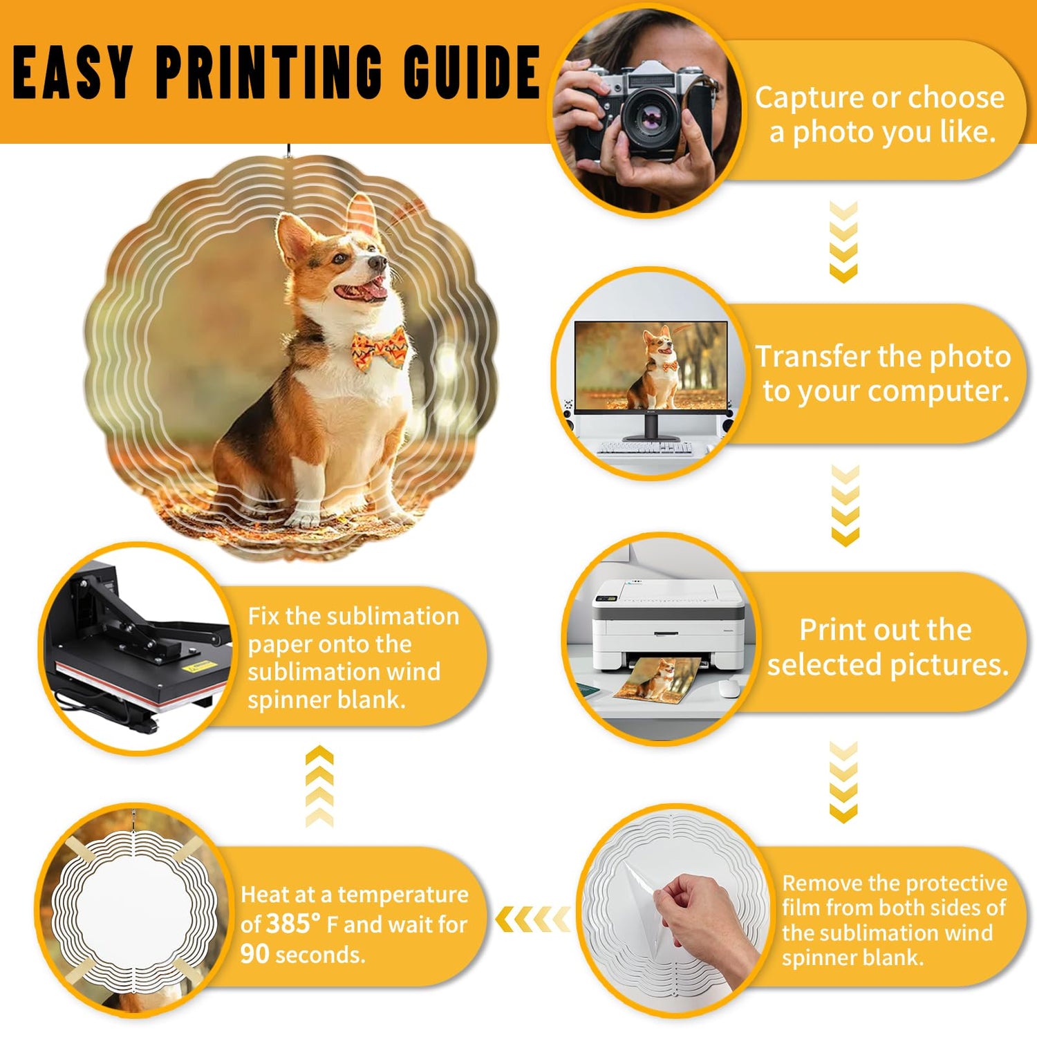 - [DOUBLE-SIDED DIY SUBLIMATION WIND SPINNER] Sublimation wind spinner blanks provide outstanding customizability, letting you add your favorite designs or photos to create a unique and eye-catching craft. These sublimation wind spinner blanks are suiting for heat transfer and UV printing, which will keep vibrant, standout colors. You can personalize both sides with either a single design or two different ones, unleashing your creativity