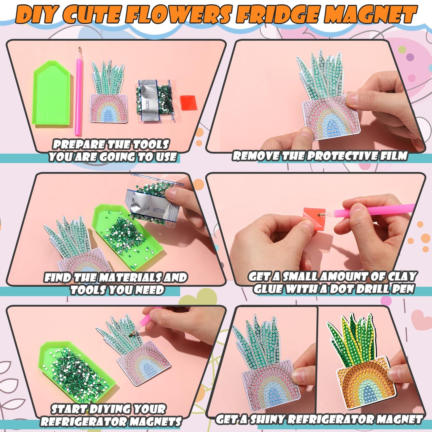 - Easy to Operate: these diamond magnets for fridge are easy to work with for most adults, just tear a protective film off the surface, and pour the rhinestones of the pattern you want to make into the tray, add sticky clay on the pen, use the drill pen to glue the rhinestones and place them in the suitable position by numbers or letters, simple and convenient