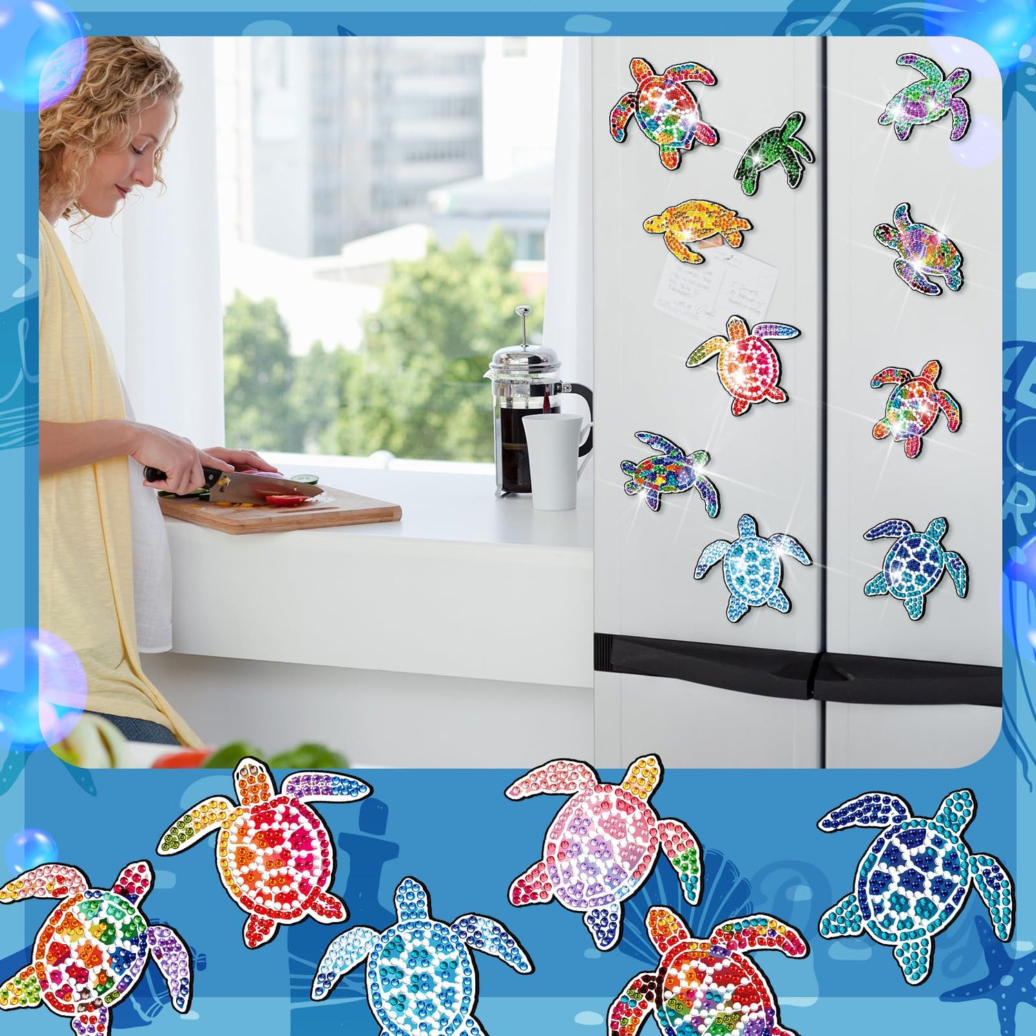 - Turtle Themed Patterns: these turtle diamond magnets featuring exquisite turtle designs, featuring colorful and irresistibly cute illustrations of turtle, which have a shiny looking and practical features, adding fun to your home decor