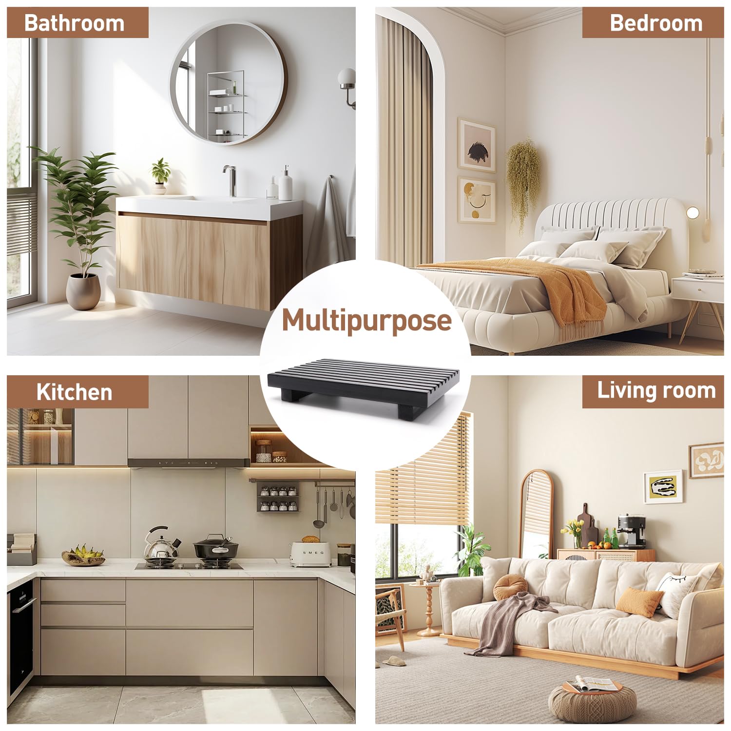 - MULTIFUNCTION WOOD RISER: The wooden tray decor will match well with the items you put on it, such as skincare, dispenser, plants, candles, mouthwash, perfumes, flower pot, jewelry, etc; This wood soap dispenser tray is very beautiful and keeps things off the counter. Great as bathroom decor, kitchen counter decor, sink tray, vanity decor, soap dispenser tray.