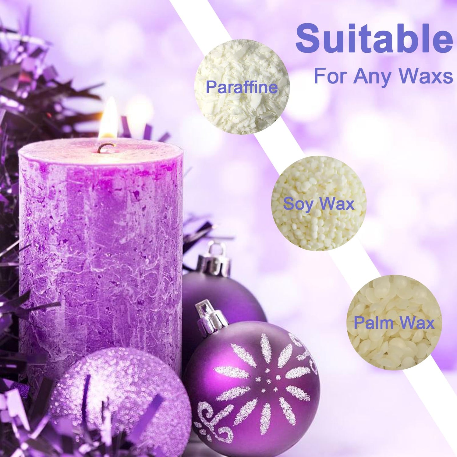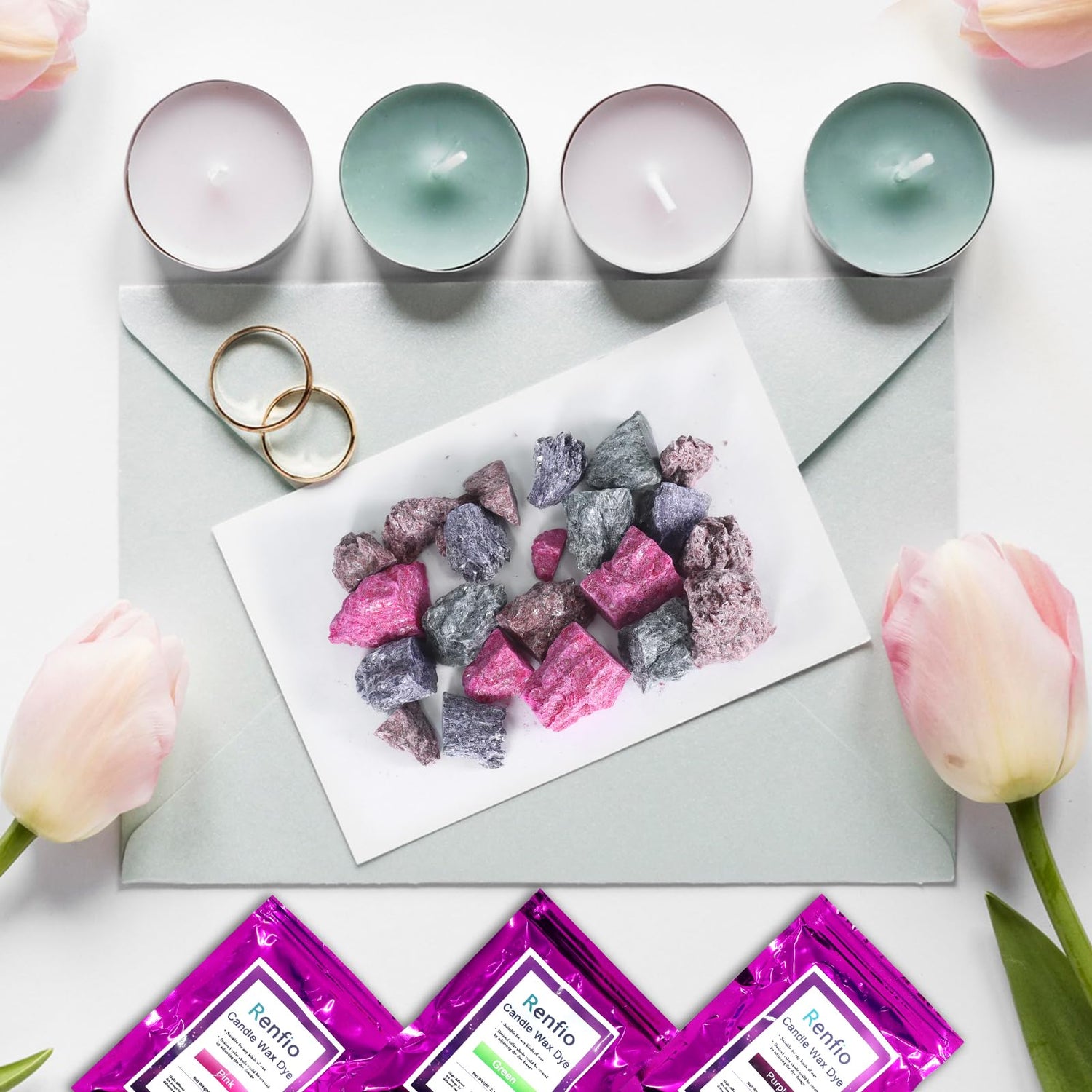 - ✅Make Many Candles - Candle making dye is made of highly-concentrated material, just a small amount of candle dyes for candle making could get a deep and rich color. 0.03-0.05oz candle wax dye for 1b palm or soy candle wax, and 0.02-0.04oz candle wax dye for 1b paraffin wax. Renfio 2.11oz/60g candle wax color dye could be used for many candles.