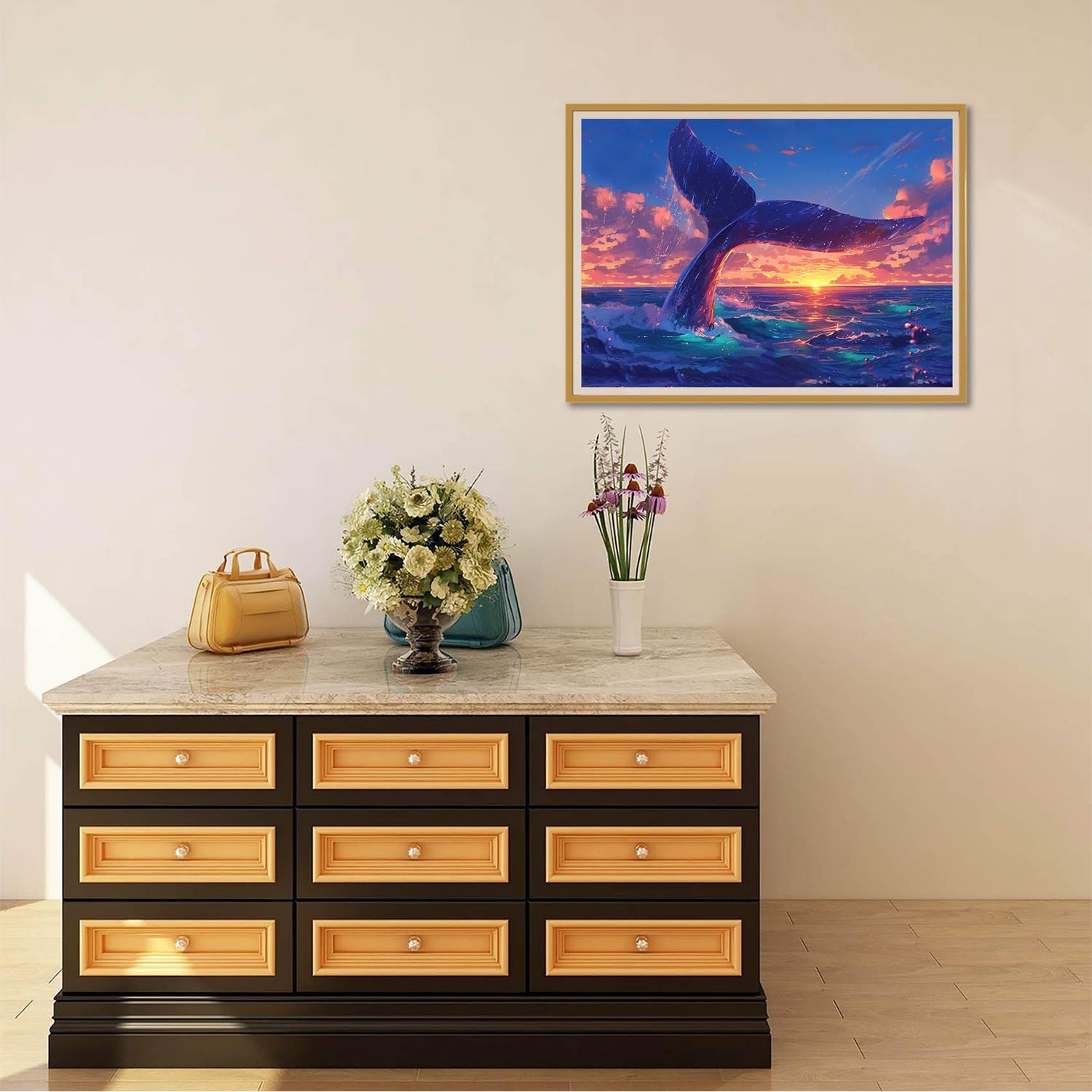 Reofrey DIY Diamond Art Painting Kits for Adults Whale, Diamond Art Ocean Full Drill Round Rhinestone, Cross Stitch Embroidery Canvas for Crafts Decor (30x40 cm/ 12x16 inch)