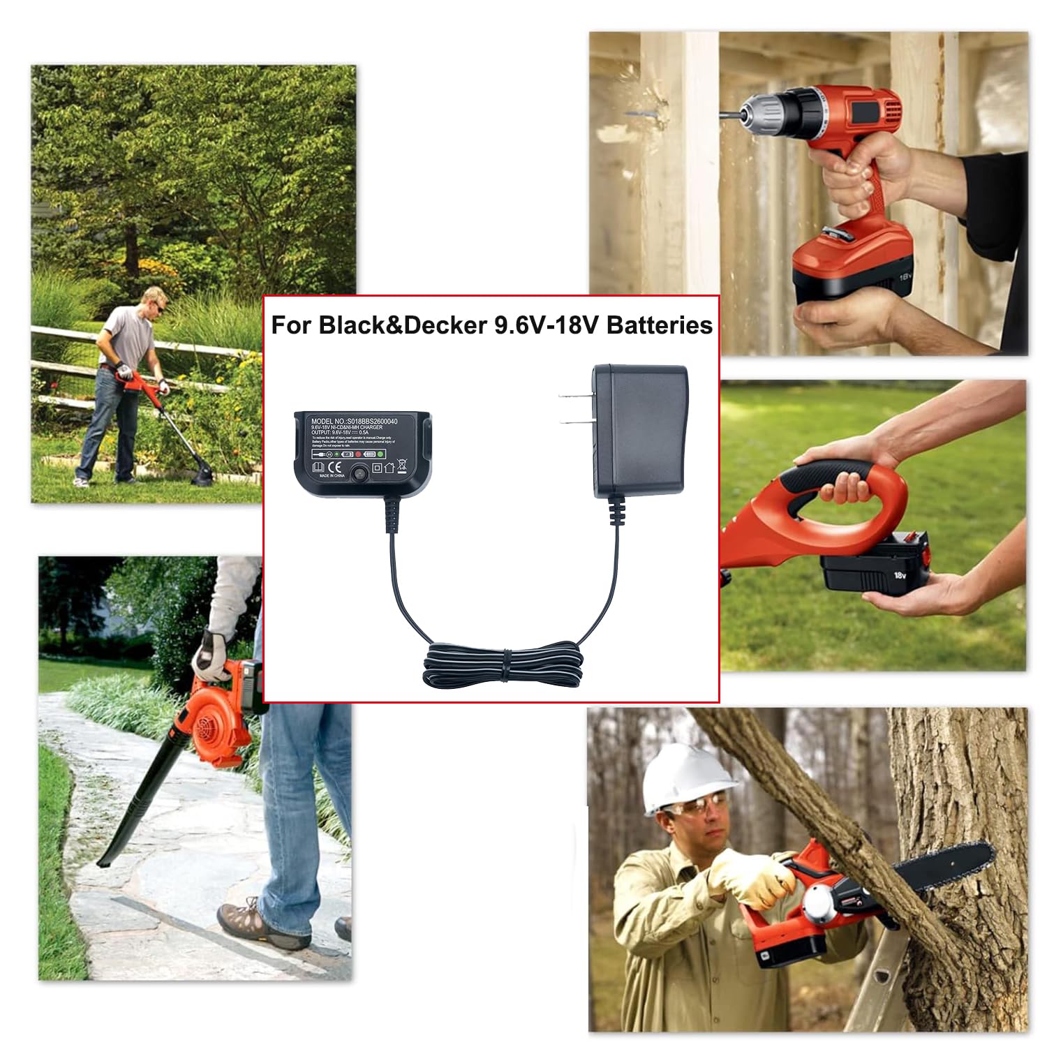 1X 9.6V-18V Charger Replace for Black and Decker 9.6V 12V 14.4V 18V NiCad & NiMh Battery (BATTERY NOT INCLUDED)