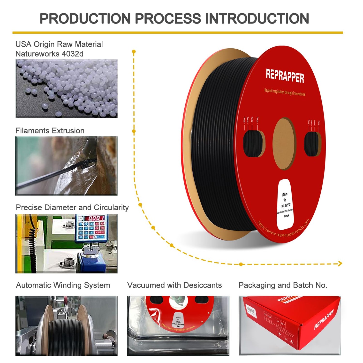 Reprapper Conductive TPU Filament 1.75mm (± 0.03mm) 2.2lb (1kg) for 3D Printer, Electro-Conductive Flexible Filament, Black
