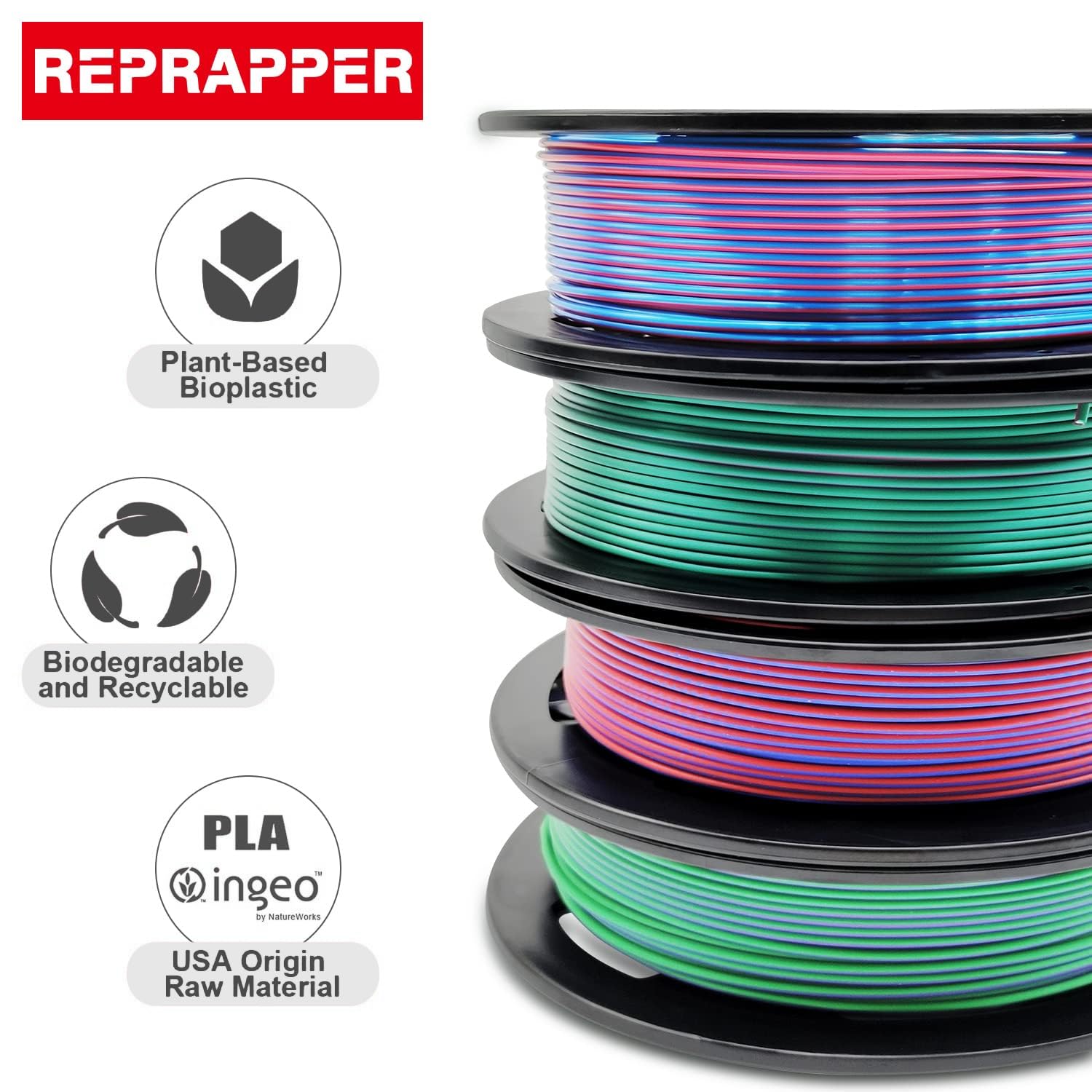 Reprapper Dual Color PLA, Coextrusion Dual Color PLA Filament 1.75mm for 3D Printer, Muliticolor Silk PLA Like Rainbow, 4 x 250g Unboxing Pack