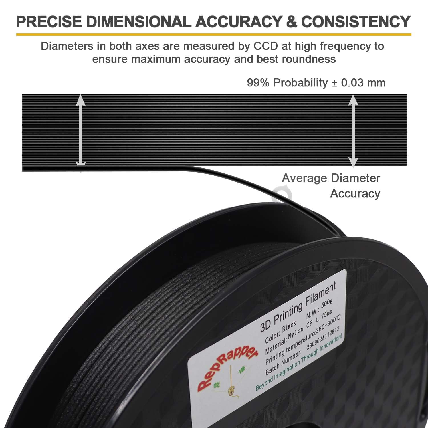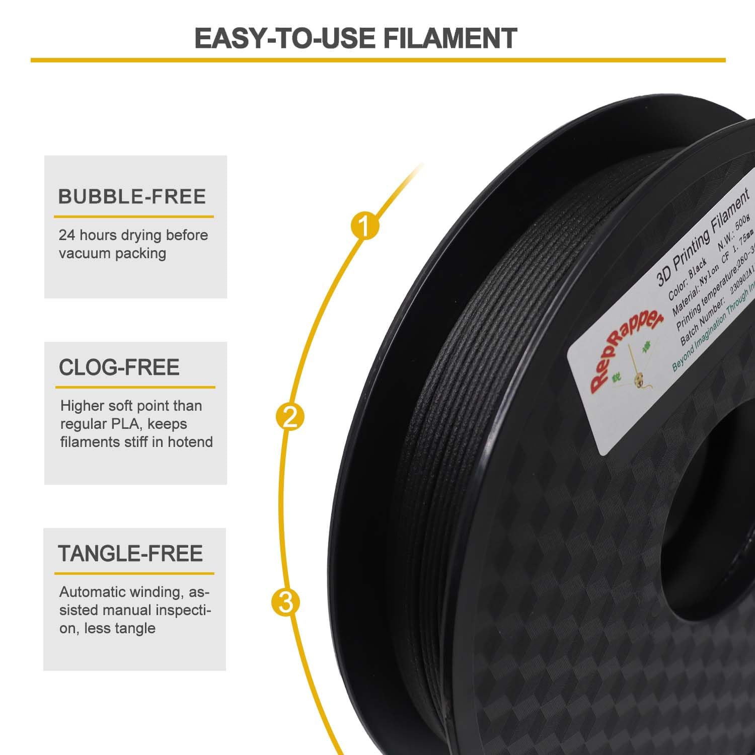 RepRapper PA12-CF 3D Printing Filament, Nylon Filament 1.75mm, 500g Nylon Carbon Fiber Filament, Black No Warping & Moisture Free 3D Printer Filament for 3D Printer