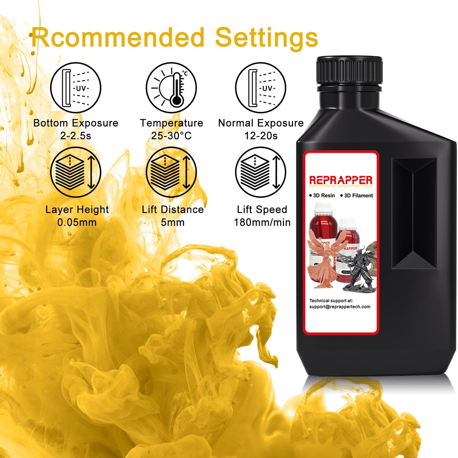 Reprapper Translucent Yellow 3D Printer Resin, 405nm Fast UV-Curing 1kg Transparent Yellow Standard Resin, 3D Printing Resin Photopolymer Sensitive Resin for LCD Printer, Clear Yellow 1000g