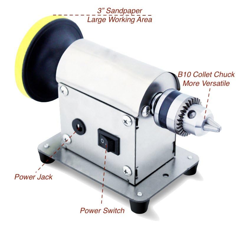 - Resin polishing machine comes with 25x sandpaper in 5 different grit, 3” larger sanding area provided by a palm size sander, plus a B10 collet chuck for more versatile applications