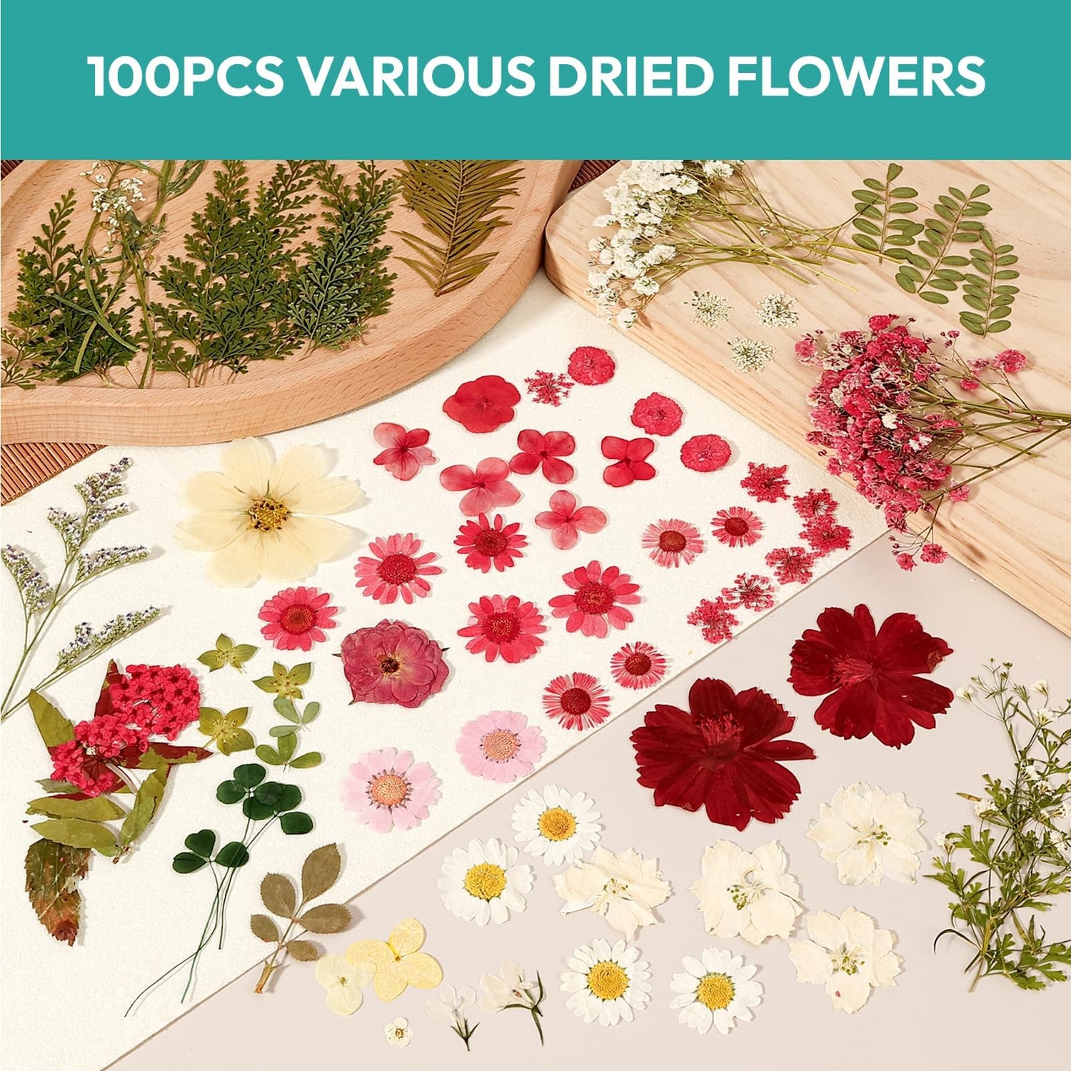 - DRIED PRESSED FLOWERS - You will receive 4 packs dried flowers in independent packaging, contains 100 pcs different kinds of flowers and leaves