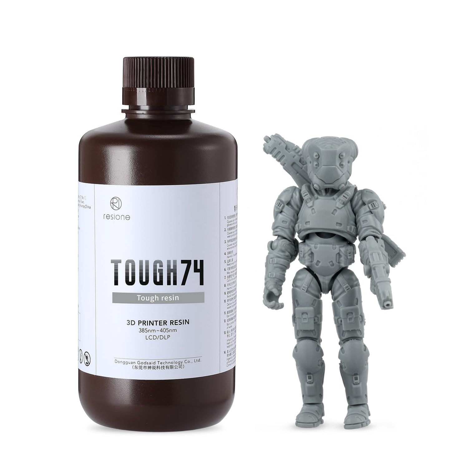 RESIONE 3D Printer Resin, Tough 74 Wear-Resistant Tough Resin with Anti-Fracture and Impact-Resistant, 3D Printing has Long-Lasting gripping for Durable Action Figures (Grey)