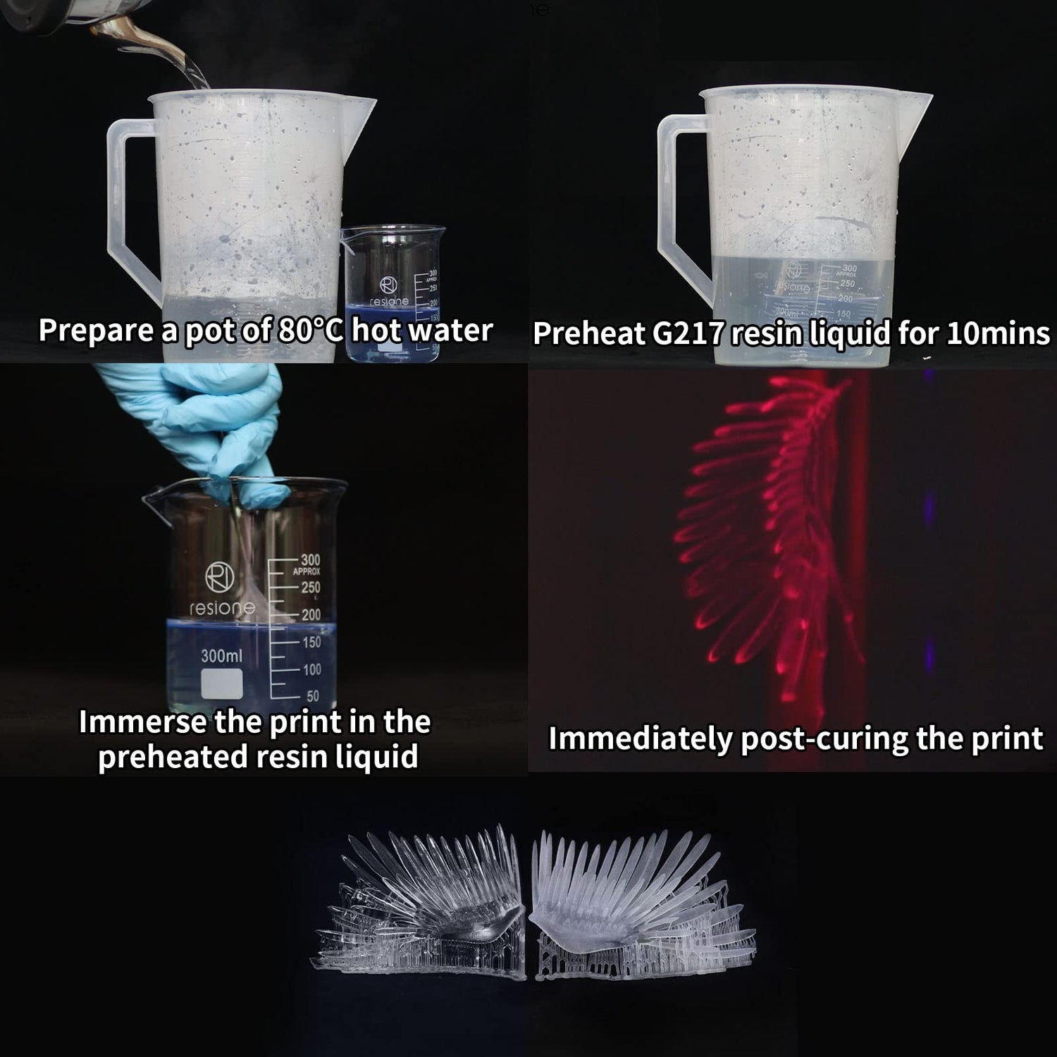 RESIONE Clear 3D Printer Resin: G217 Clear Resin 3D Printer Liquid with Non-Yellowing - Tough ABS Like Resin with High Transparency for DLP MSLA LCD 3D Printing (1000g)