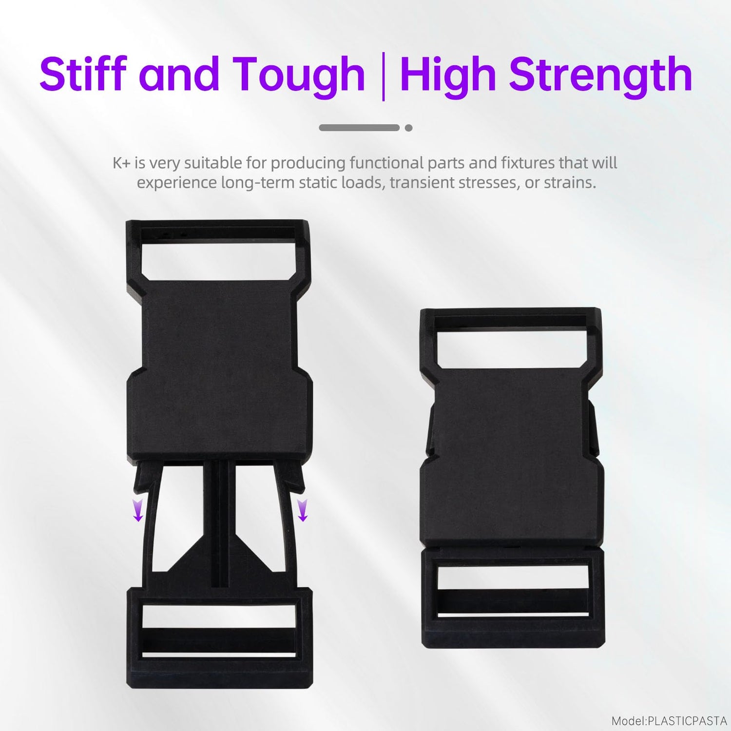 Details: K+ has undergone a formula upgrade based on K resin, making it an ideal material for producing functional parts or assemblies. K+ and K printed parts have similar physical properties—High stiffness and toughness, extremely high dimensional and detail accuracy. However, K+ has lower water absorption and better scratch resistance compared to K, which makes K+ more widely used, such as for parts operating in high humidity environments or components that require repeated disassembly and assembly. In addition, the K+ printed parts are pure black and will not appear blue purple in sunlight, with a texture and mechanical properties similar to those of injection molded parts.